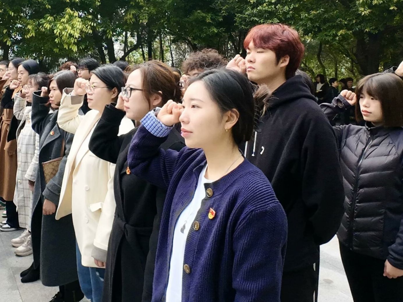 巍巍青松默守忠魂,皎皎晨光抚碑铭文。革命烈士纪念碑前,淬炼商学院学生党支部的师生党员和参训学员列队如松,百双眉目低垂,指间白菊凝露。三鞠躬时,松涛与心跳同频;默哀三分钟,晨露与泪光共莹。全体参与者集体宣誓,入党誓词铿锵有力,惊起林间宿鸟,誓言如星火燎原,在苍穹下激荡回响。在这誓言中,有继承遗志的承诺,更有砥砺前行的担当。当信仰化作火炬,英魂当见,吾辈正擎着红色薪火,照亮新时代的征程。