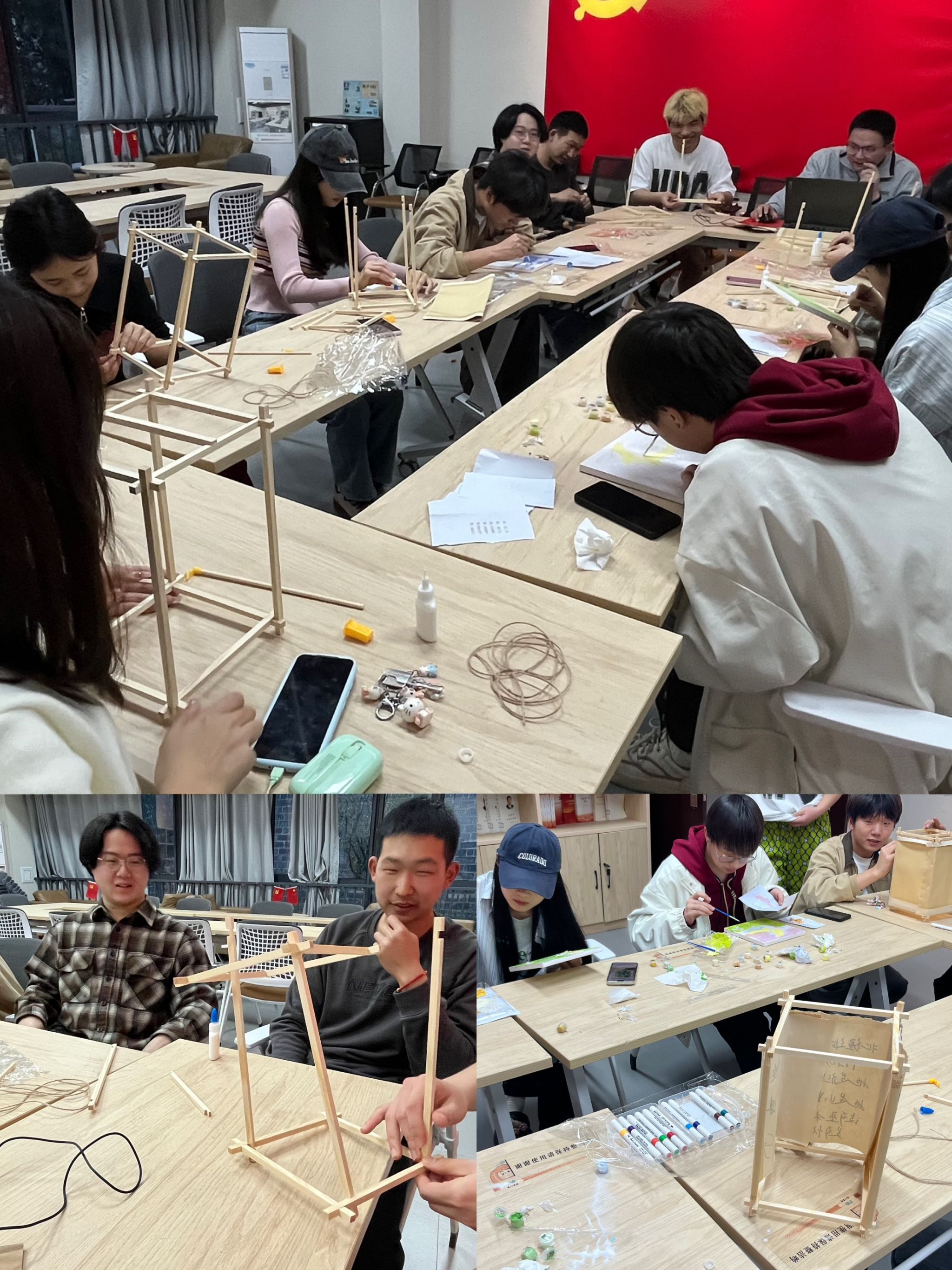 明灯永亮,心愿可望。柔和的灯光下,彩纸与竹条错落摆放,宛如等待奏响的乐章。同学们围坐,指尖轻舞,竹条在弯折中勾勒花灯雏形,恰似构建着梦想的框架。彩纸被悉心剪裁、黏贴,每一下动作都饱含深情。待花灯初具模样,笔锋游走,“愿祖国山河永固,盛世长歌”“望自己学业顺遂,为国立业” 等话语跃然灯上。这些花灯,不再只是手工,而是同学们以青春为注,对祖国繁荣的深情祈愿,对自我成长的笃定期许,在校园里熠熠生辉,诉说着独属于这个班级的家国故事。