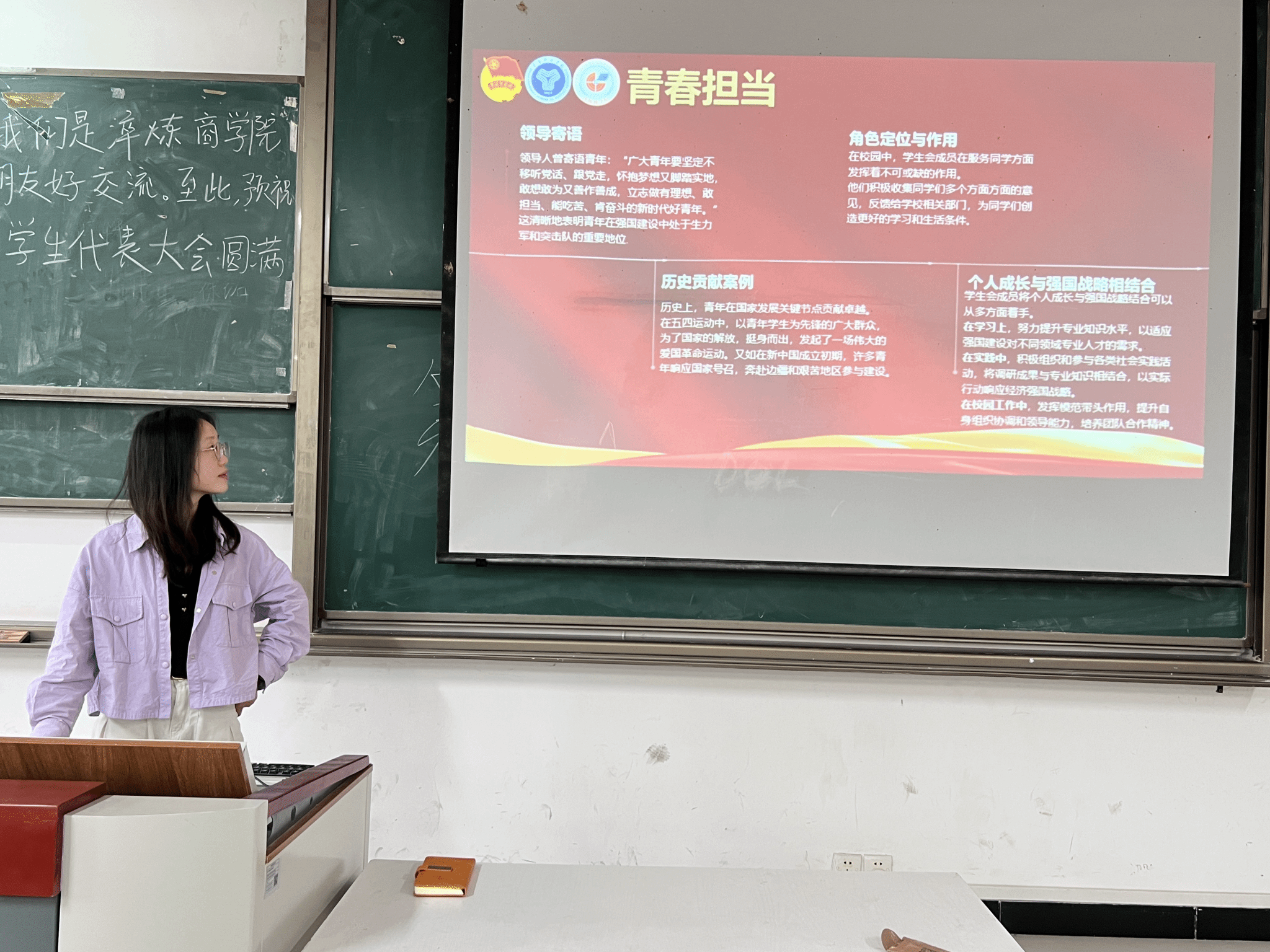 站在“两个一百年”奋斗目标的历史交汇点上,强国战略如巍巍巨轮破浪前行,而青年学子正是这艘巨轮的掌舵者与划桨人。淬炼商学院学生会应势而为,于2025年4月13日5101开展了以“强国有我,青春领航”为主题的2024-2025学年(下)学生会功能性团课第一期培训。在这场团课中,成员们共同思考:在强国建设的新征程中,学生会如何以青春之我,谱写新时代的青春华章?