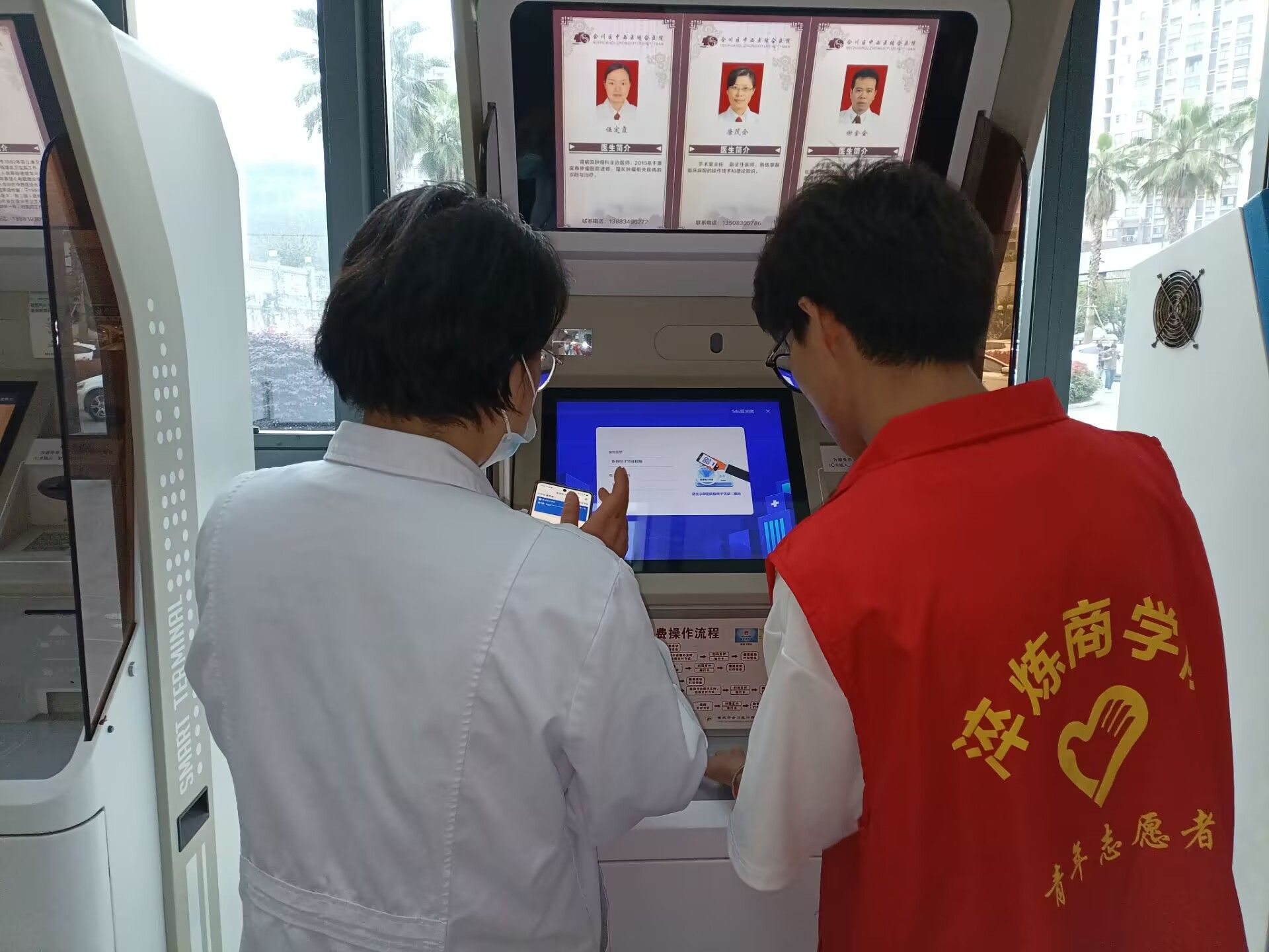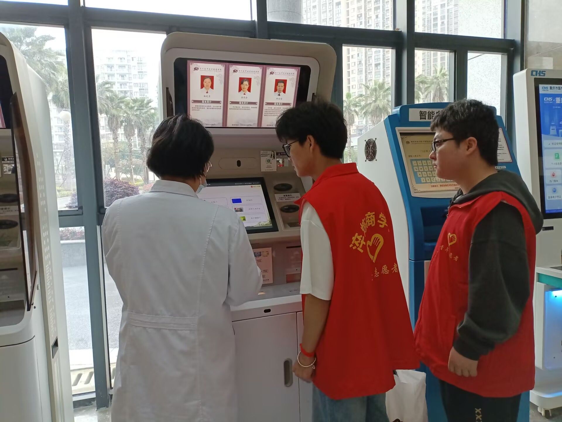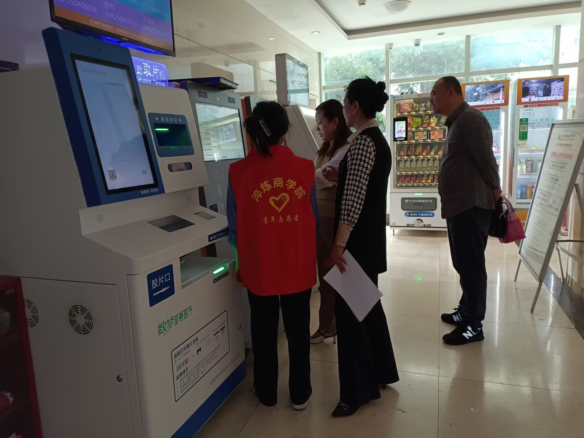 志愿者们以最饱满的精神状态和诚挚的笑容,迎接每一位前来就医的患者。挂号大厅,人潮涌动,这里是患者就医旅程的起点,也是最容易让人感到迷茫和焦虑的地方。志愿者们如同灵动的音符,穿梭在各个自助挂号机之间。面对那些被现代化设备弄得手足无措的患者,尤其是眼神中满是迷茫的老年患者,志愿者们总是主动上前,俯下身来,耐心细致地指导。志愿者们的声音轻柔且坚定,每一个动作都充满了关怀。这看似简单的举动,却让原本拥挤嘈杂的挂号处秩序井然,也让患者的心头多了一份安稳。