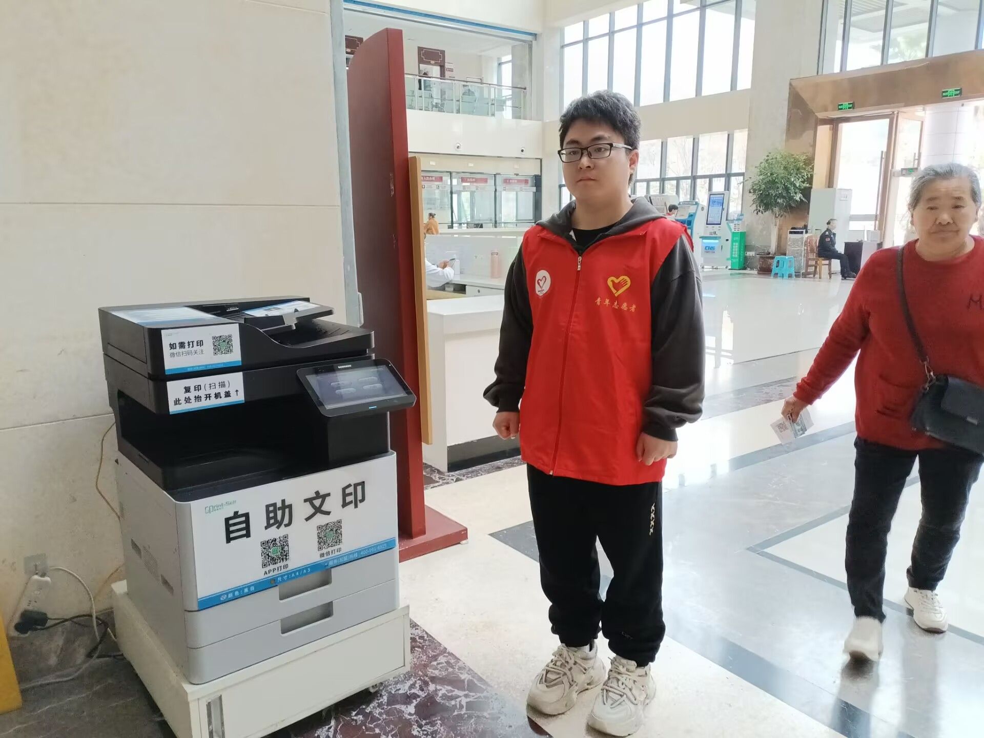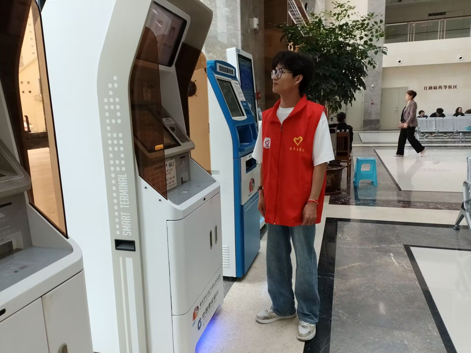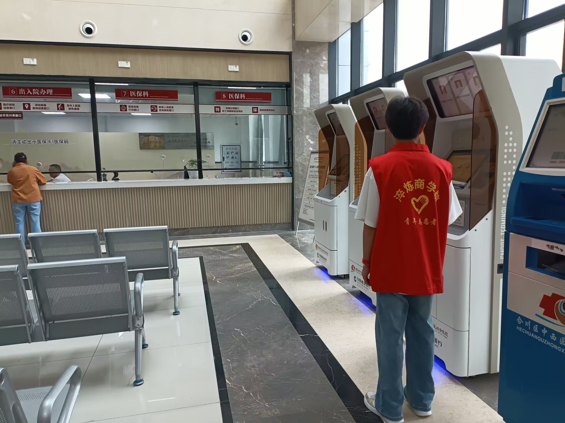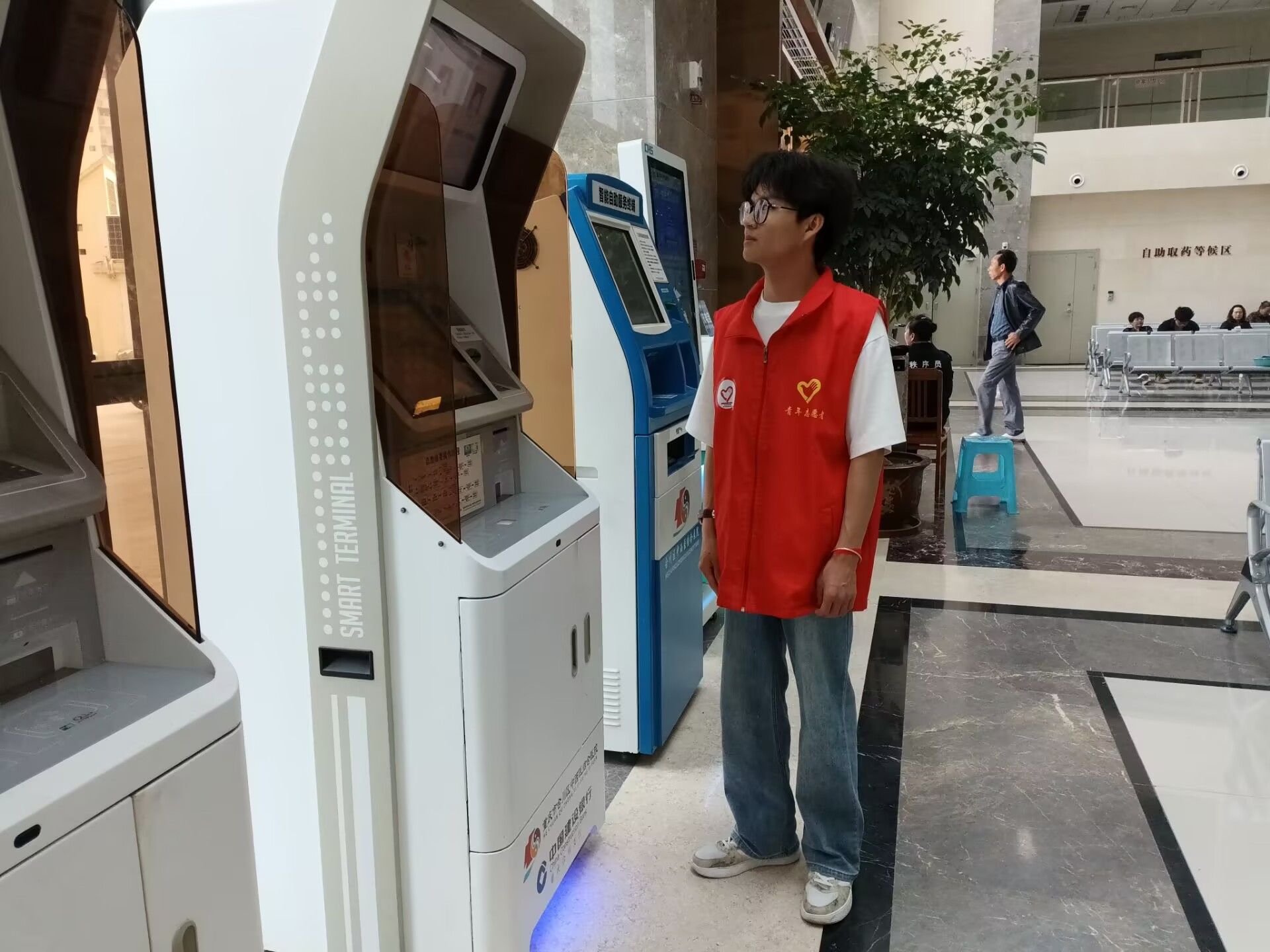 志愿者们以最饱满的精神状态和诚挚的笑容,迎接每一位前来就医的患者。挂号大厅,人潮涌动,这里是患者就医旅程的起点,也是最容易让人感到迷茫和焦虑的地方。志愿者们如同灵动的音符,穿梭在各个自助挂号机之间。面对那些被现代化设备弄得手足无措的患者,尤其是眼神中满是迷茫的老年患者,志愿者们总是主动上前,俯下身来,耐心细致地指导。志愿者们的声音轻柔且坚定,每一个动作都充满了关怀。这看似简单的举动,却让原本拥挤嘈杂的挂号处秩序井然,也让患者的心头多了一份安稳。