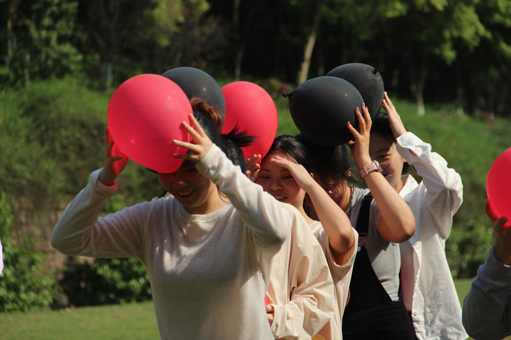秉持“友谊第一,比赛第二;竞技体育,重在参与”的理念,活动设置了多个站点,在尖叫指压板上同学们咬紧牙关却相互打气,步伐协调、配合默契。每个项目都考验着团队协作,成同学们积极沟通、出谋划策。从运用道具到团队合作每个环节都饱含用心,在活动中不仅让同学们在运动中强化健康意识,更在互动里加深友谊为校园生活增添一抹亮丽色彩。哨声划破草坪,彩色气球在同学们的胸膛与后背间筑起“人体链条”。各班战队化身“动力火车”,在10米赛道跌撞前行——或弓腰碎步似螃蟹横行。
