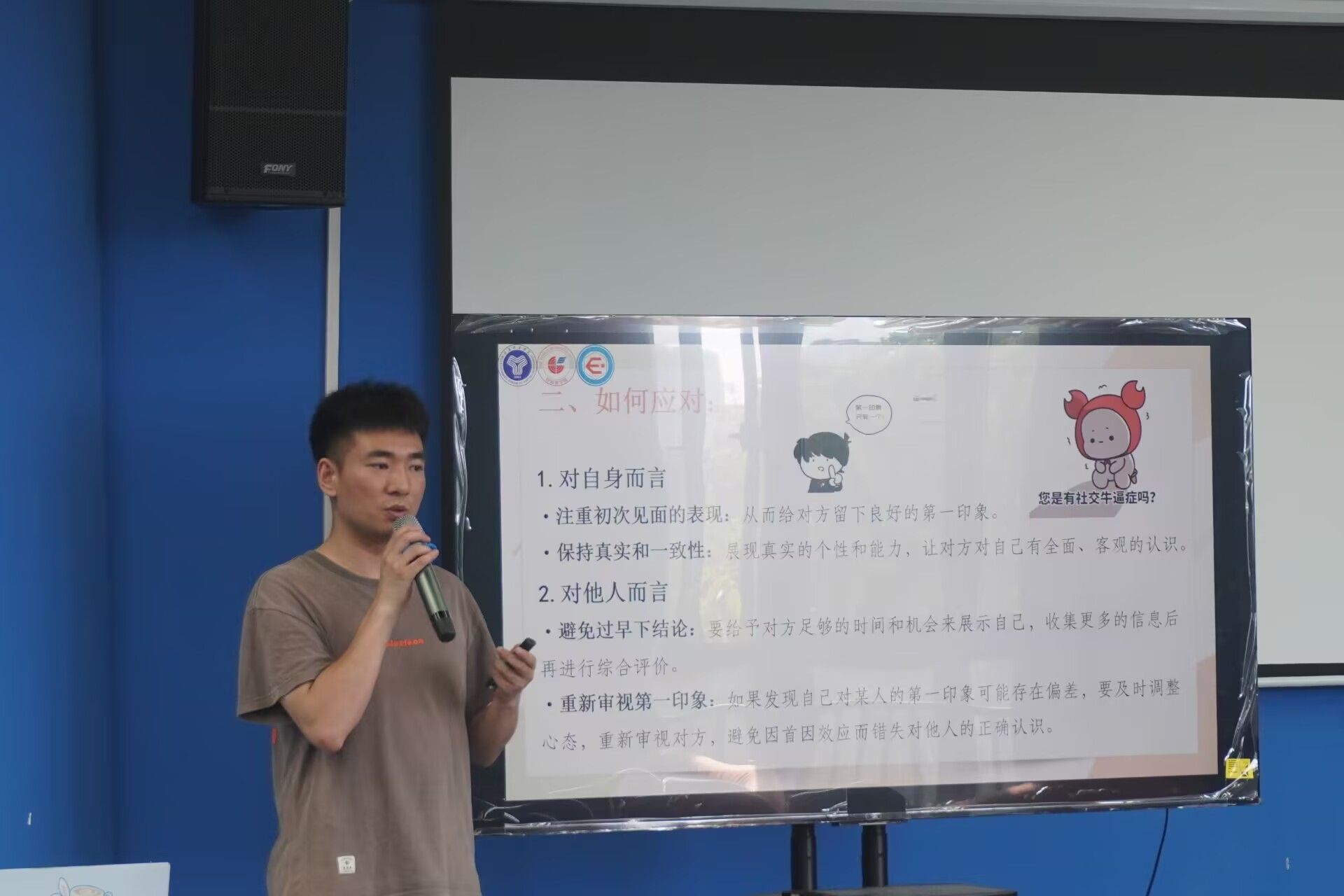 金老师的讲解环节结束之后,我们进入答疑环节,其中一位同学答道:“我常觉得自己的学习能力不行,如何通过心理学学习高效的学习方法”,金老师答道:“我们可以利用奖励机制强化学习行为,如完成任务后短暂休息或娱乐,形成努力-奖励-动力的正确循环”,金政杕老师通过同学们的提问,对同学们不了解的地方也做了详细的解释,让教师通过活动更深入地了解学生的实际需求,而学生也能感受到教师的关怀和支持,建立互信关系。同时金政杕老师强调在人际关系上如何做到在交往的同时提升自我能力,可以控制情绪做到积极沟通、知足常乐不过分要求自己、学习健康的心理知识等,这也深刻地反映出活动的目的:传递心理健康的重要性和调试方法。