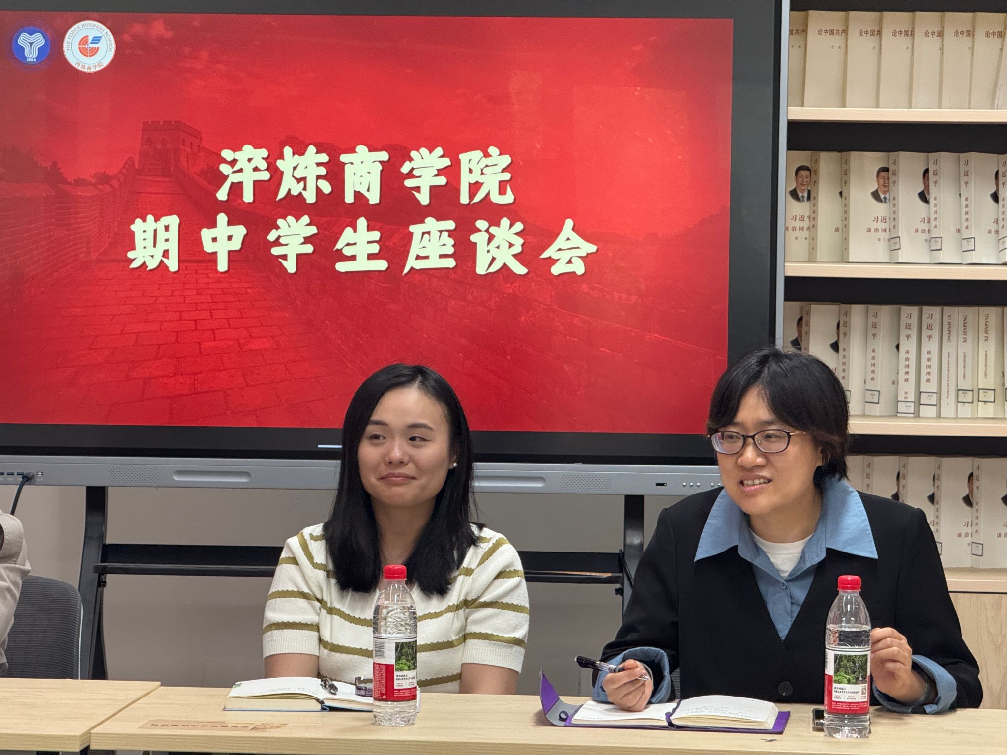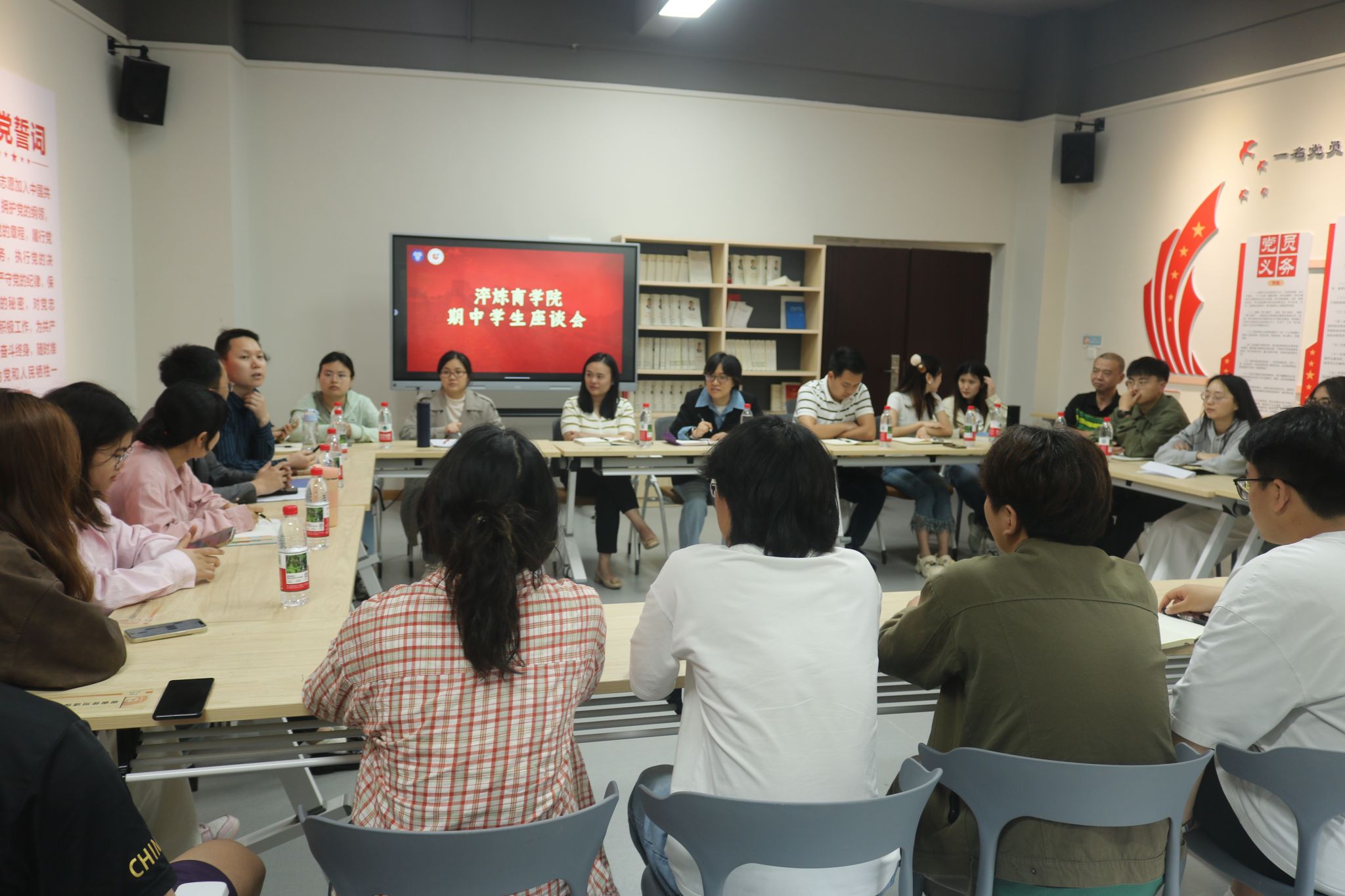 为深入了解学生需求,及时解决学生在校困难和问题。淬炼商学院于2025年4月23日16:00在南湖党员活动室举办了“匠心共研育桃李·聚力同行谱新篇——淬炼商学院2024-2025下学年期中教学座谈会暨院长接待日”活动。我院副院长曾璐、刘薇唯,教务处杨旭,学工处欧玲灵,学工办主任廖进,各教研室主任,各年级辅导员组长出席本次活动,本次座谈会由辅导员老师杨子莹主持。