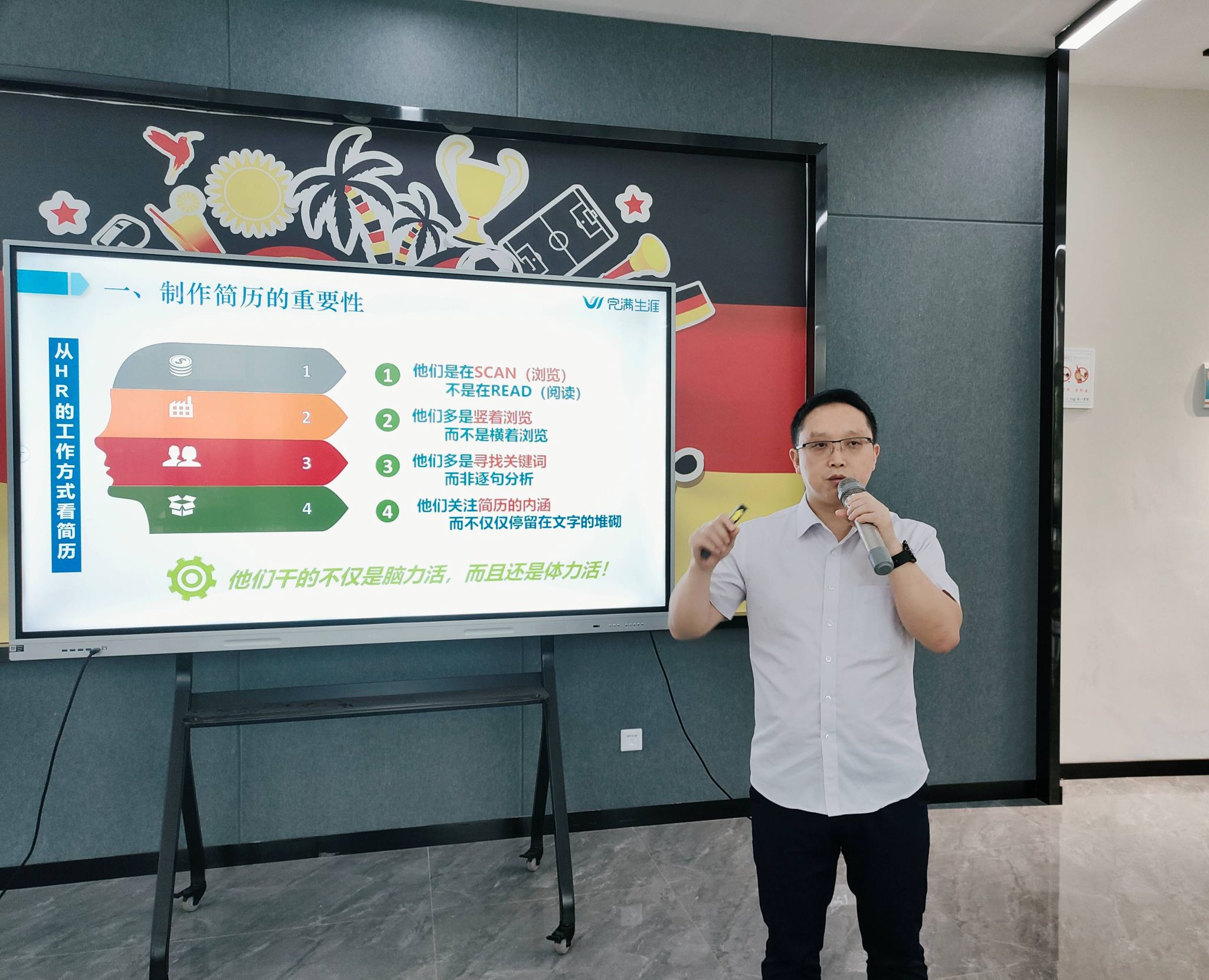 简历,作为求职的重要一环,承载着求职者的能力与态度。卢伯年老师指出,从HR工作方式来看,观看简历多是快速浏览(SCAN)而非逐字阅读(READ)。因此同学们需用简洁排版、突出关键数据,以视觉化设计抓住HR目光,高效传递竞争力。卢伯年老师还引导同学们深度剖析职位描述,依据HR筛选偏好,挖掘并量化自身过往成就,以此提升简历与岗位的匹配度和竞争力。卢伯年老师分享的简历撰写策略,能帮助同学们打破求职信息差,以HR视角重塑简历,让每份经历都成为“加分项”,大大提升同学们获得面试机会的成功率。