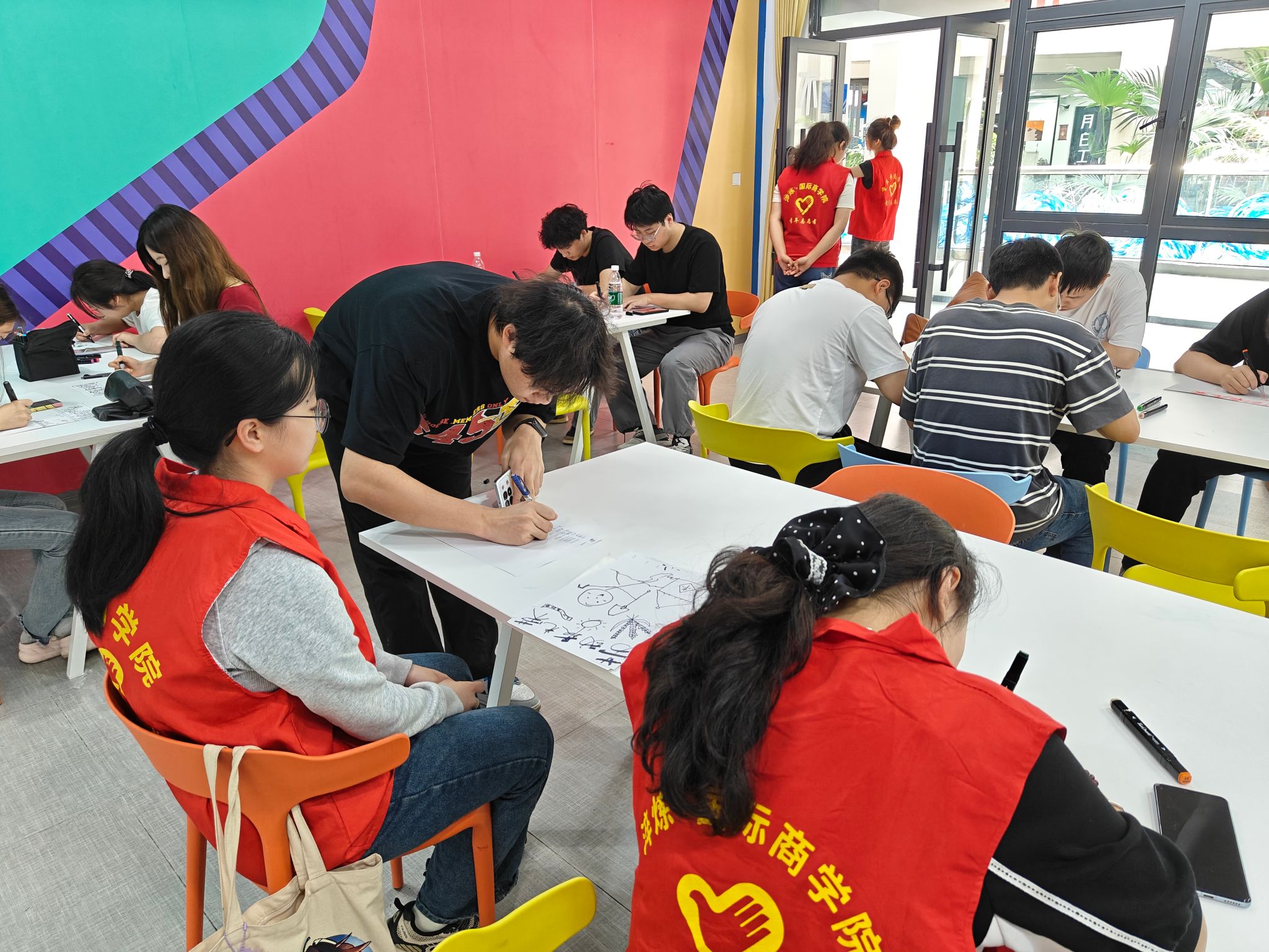 活动伊始,现场便洋溢着热烈而积极的氛围。部分提前完成绘画创作的同学,将绘制的作品递交给了在场志愿者。与此同时,还有一部分同学现场挥毫,用画笔开启了一场与劳动的对话。