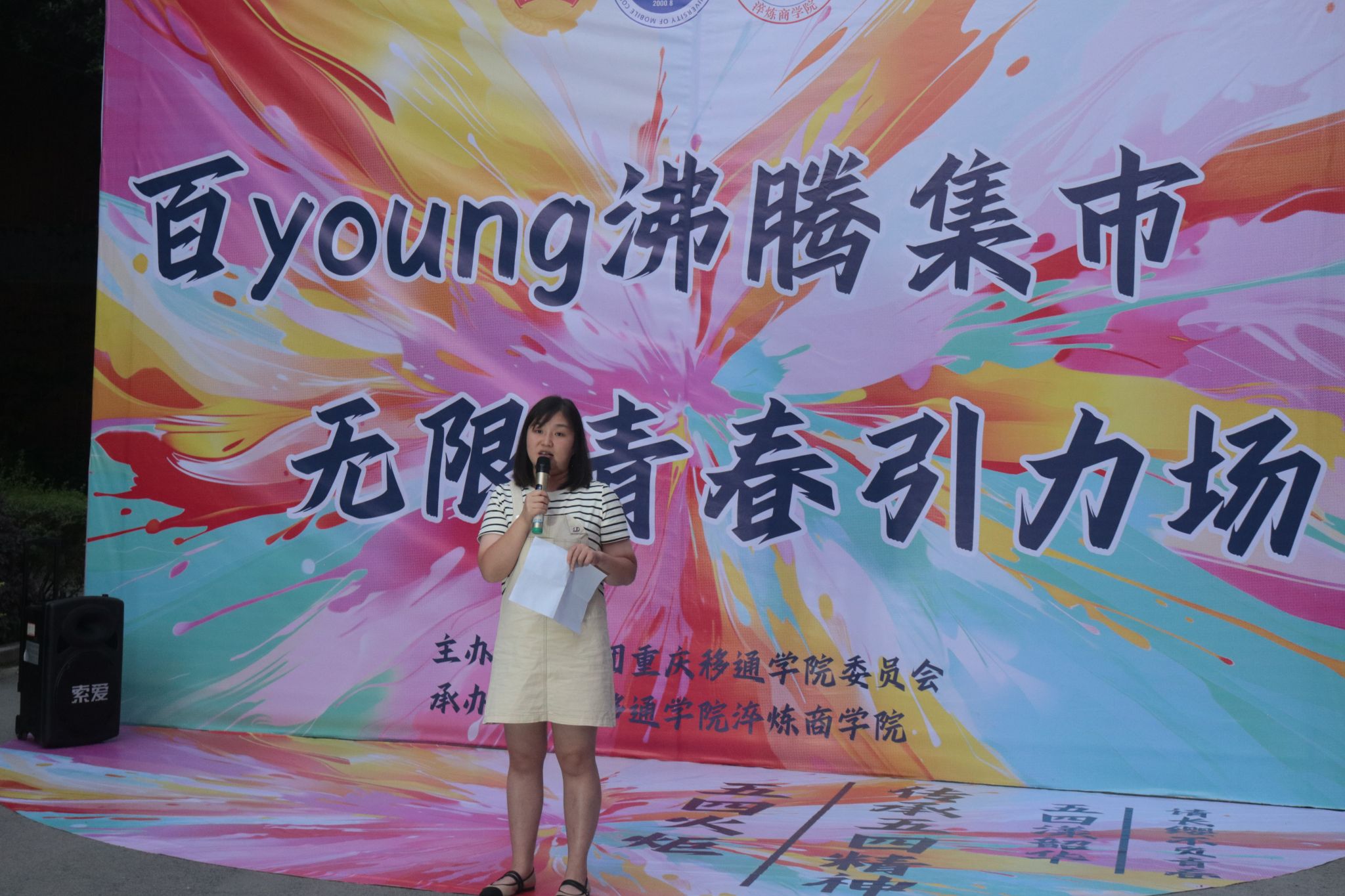 由共青团重庆移通学院委员会主办、重庆移通学院淬炼商学院承办的"百YOUNG沸腾集市·无限青春引力场"五四品牌月子活活动于2025年5月14日19:00在花果小广场活力启幕。这场以"青春+创意+传承"为内核的青春集市,吸引了众多移通学子的热情参与。