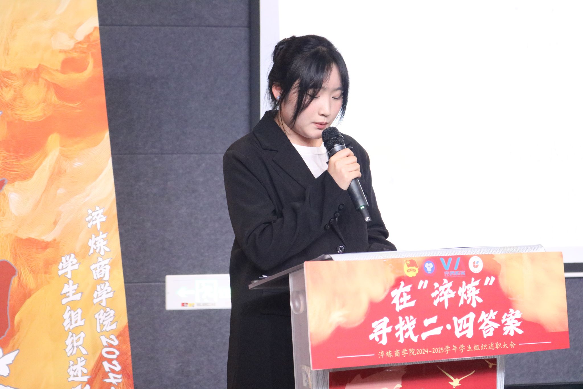 大会最后,淬炼商学院副院长刘薇唯,对本次述职大会进行了总结发言。对各部门过去一年的工作给予了充分肯定,同时也对未来学生组织的发展提出了殷切期望。强调各部门要继续发扬团结协作、勇于创新的精神,不断提升自身素质和工作能力,为淬炼商学院的发展做出更大的贡献。