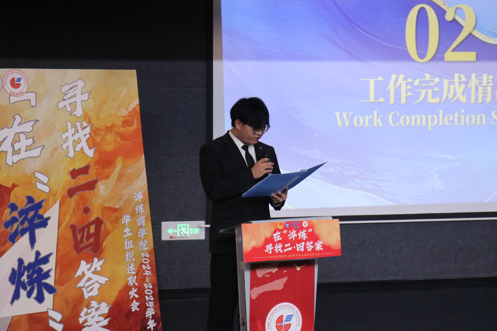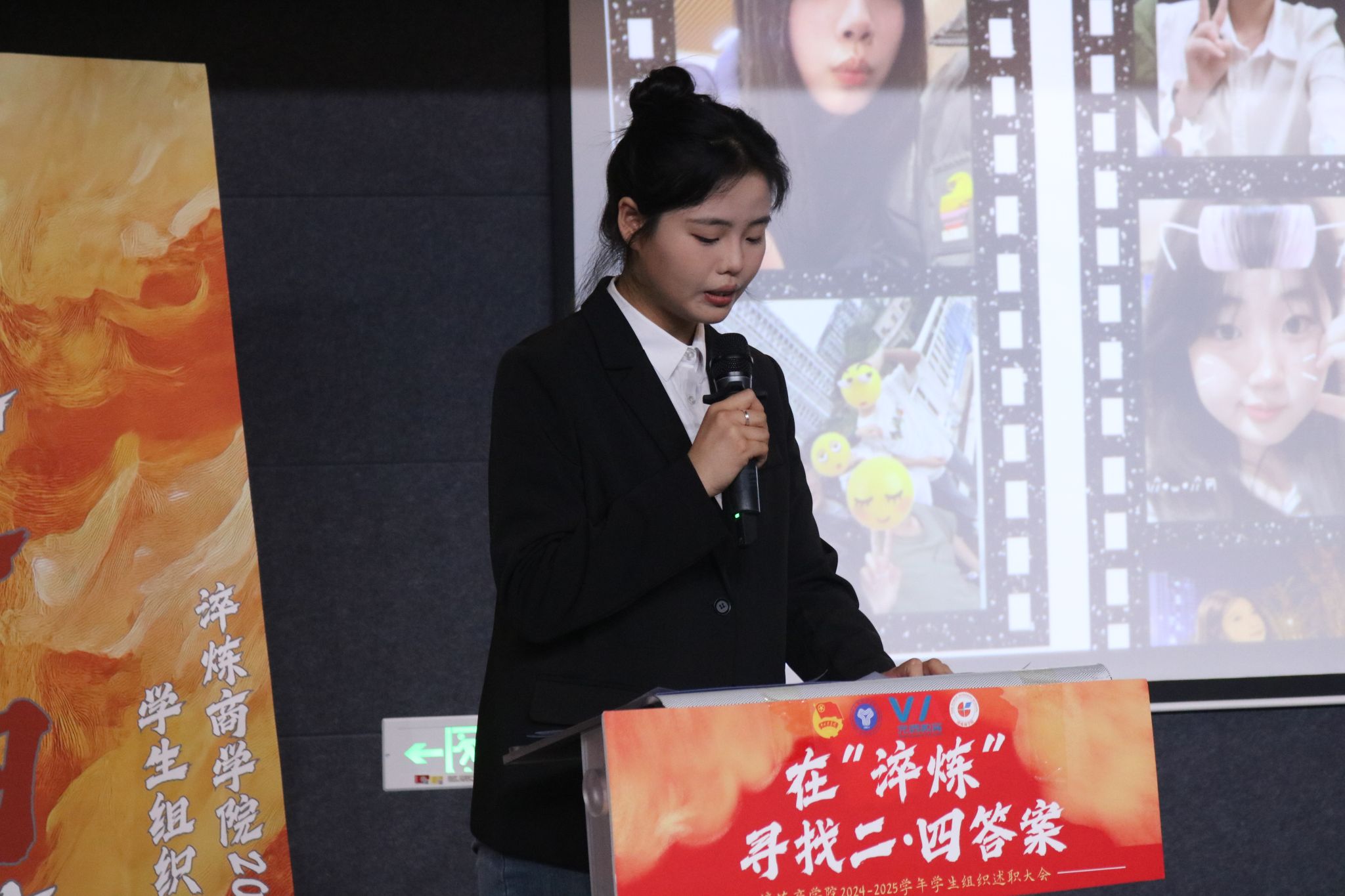 此次“在淬炼,寻二四答案”-2024 - 2025学年学生组织述职总结大会的成功举办,不仅为各部门提供了一个展示自我的平台,也进一步明确了学生组织未来的发展方向。相信在全体干部干事的共同努力下,淬炼商学院学生组织将不断创新发展,取得更加优异的成绩,为学院的发展和学生的成长书写更加辉煌的篇章。