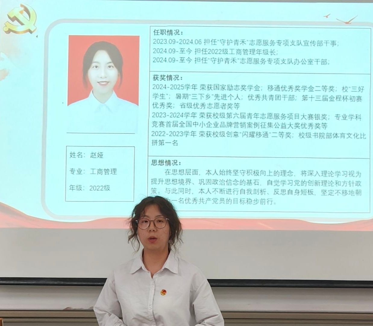 大会在庄严的国歌声中拉开序幕。会议严格按照《中国共产党发展党员工作细则》中规定的程序进行。大会第一项何春艳、赵娅、苏媚三位发展对象逐一上台向大会进行汇报,她们详细地阐述个人对党的认识、入党动机以及在思想、学习、工作、生活等方面的现实表现,从坚定的入党决心、优秀的个人品质以及自身仍存在的缺点及不足,未来改进方向等进行汇报,表明了自己入党强烈意愿和决心并宣读《入党志愿书》。