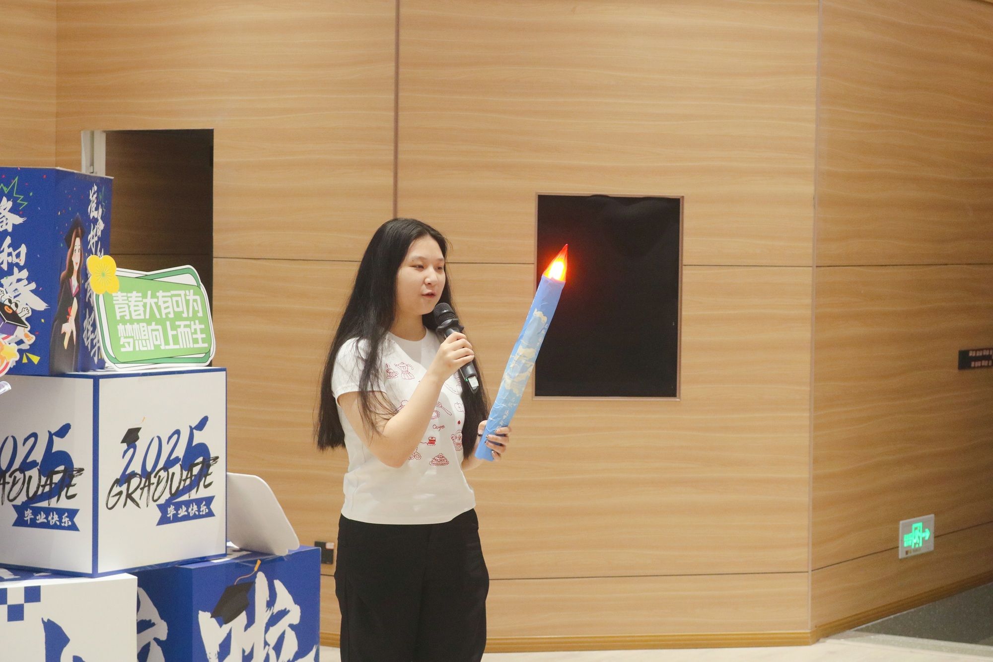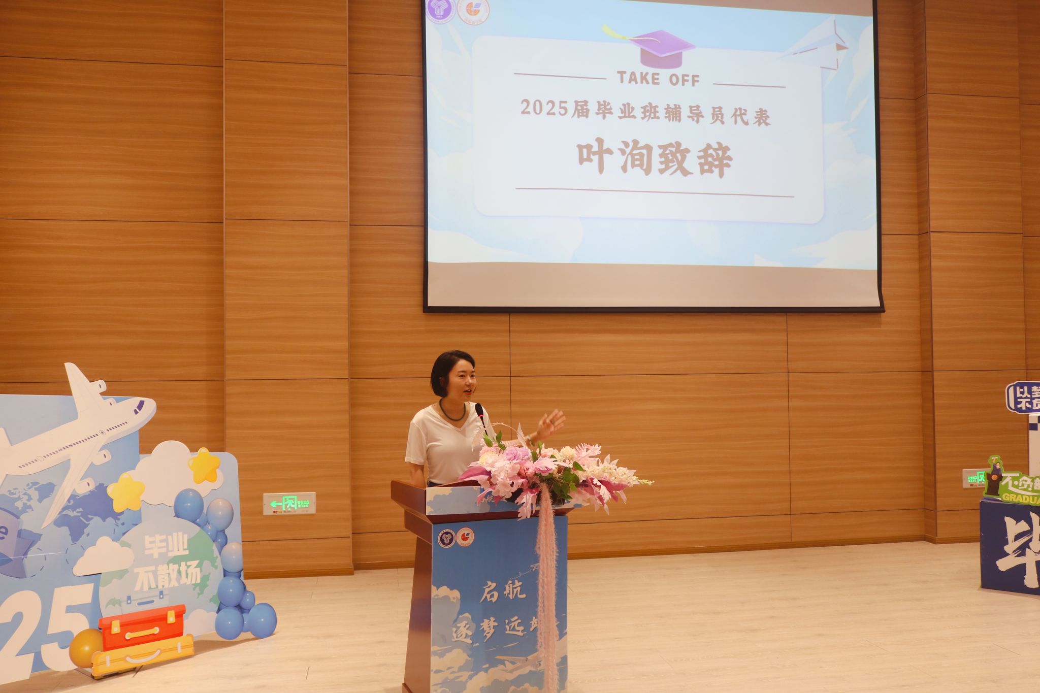 2025届毕业班辅导员代表叶洵老师则以“人生领航员”的身份,分享了与学生共同成长的点滴。“你们的每一次困惑咨询、每一次竞赛备赛、每一次深夜谈心,都是辅导员生涯的‘飞行日志’”,她的温情寄语让不少毕业生眼眶湿润。
