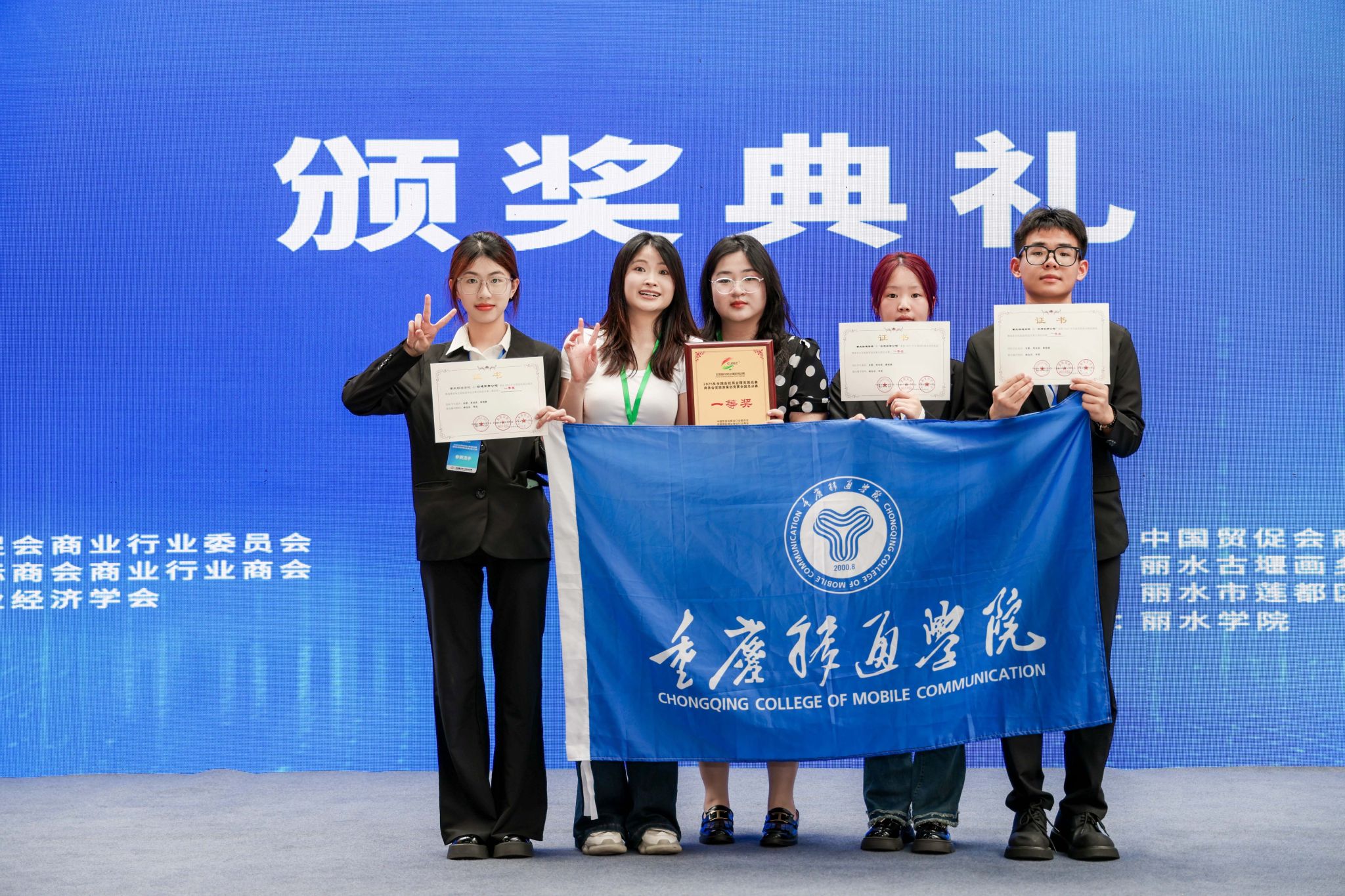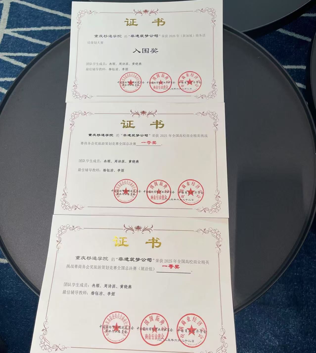 最终,重庆移通学院参赛作品——《非遗薪火映企魂,匠心共筑新征程》荣获多项奖项:在2025年全国高校商业精英挑战赛商务会奖旅游策划竞赛全国总决赛中一等奖、2025年(新加坡)商务活动策划大赛入围奖;此外,在展洽交流环节中,团队凭借精彩出色的表现荣获2025年全国高校商业精英挑战赛商务会奖旅游策划竞赛全国总决赛(展洽组)一等奖!