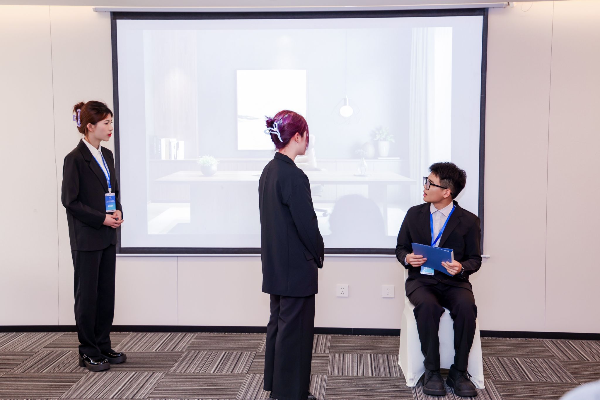 6月21日上午,团队在酒店大厅进行了比赛签到以及PPT的拷贝。紧接着,队员们回到酒店房间内,紧锣密鼓地排练答辩内容,为即将到来的比赛全力以赴。下午6点,杨钰洁老师带领队长参加了领队会议,详细了解了比赛流程与规则。