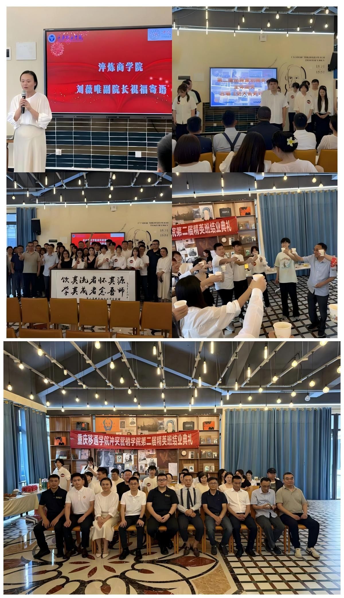 结业典礼的最后环节,刘薇唯副院长为学员们送上了美好的祝福寄语,她祝愿学员们未来在各自的职场道路上一帆风顺,前程似锦,并与学员们一同切开了结业蛋糕,象征着这场充满知识收获与成长的精英班之旅圆满画上句号。随后,精英班全体同学以《明天会更好》大合唱的歌声表达了对这段难忘经历的不舍与对未来的美好期待。活动在一片欢乐祥和的氛围中落下帷幕,紧接着学员们与嘉宾们一同参与了结业冷餐会,大家在交流中分享着对本次活动的感悟与对未来的展望。