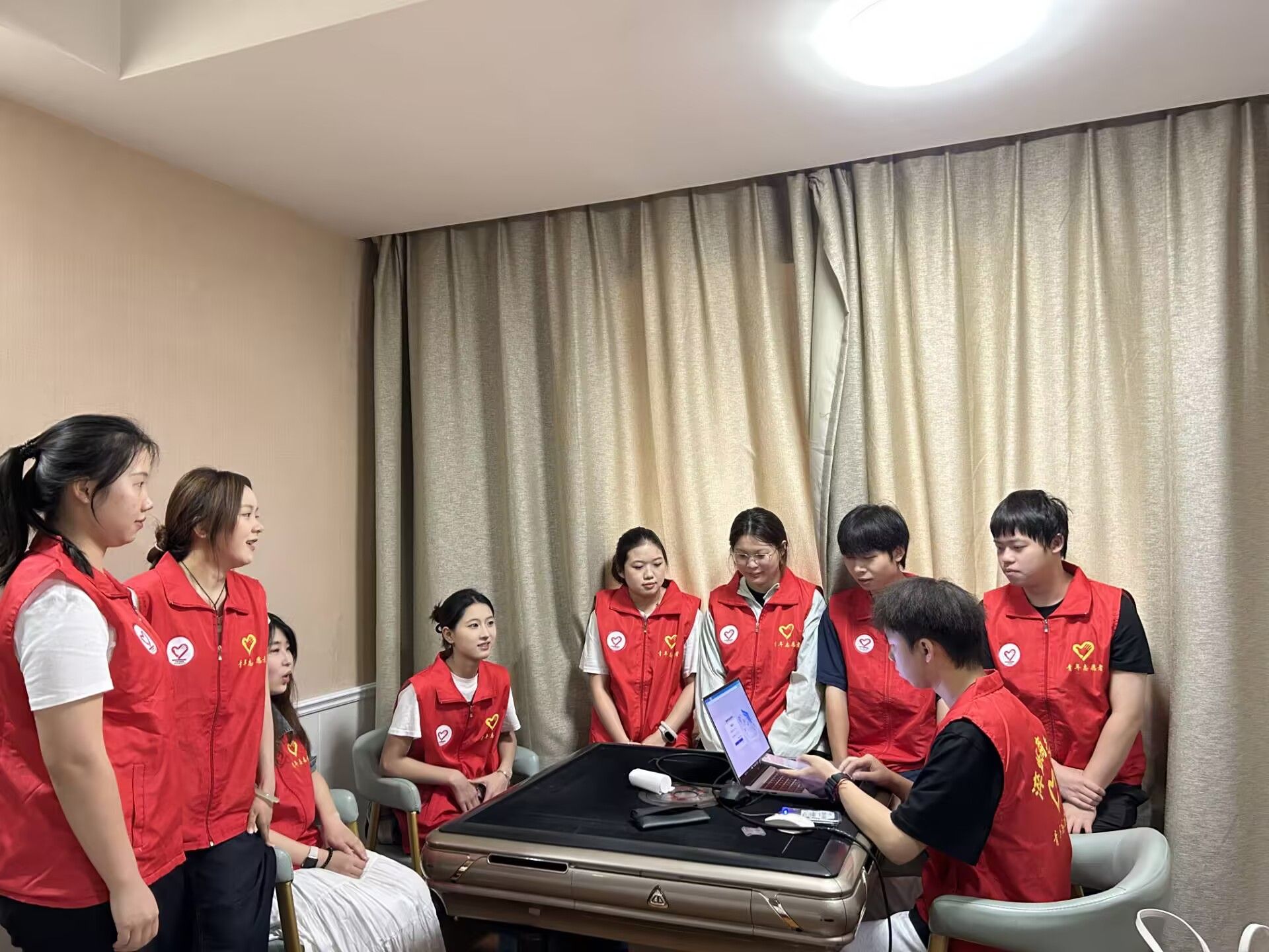 南校区正门前旌旗猎猎,活动负责人唐铭逐项清点防汛物资包,无人机设备嗡鸣待飞。指导老师金政杕手持《山区应急手册》,强调“驱蚊防暑装备随身带,暴雨预警随时盯”。赴合川站途中,文化组摊开《凯里非遗地图》热烈研讨:“蓝染工坊调研路径需避开水患区”“银饰作坊拍摄需捕捉錾刻火花”。文创组同步解码百鸟衣纹样,电脑上羽翎图腾渐次铺展,苗绣密码在指尖流转。