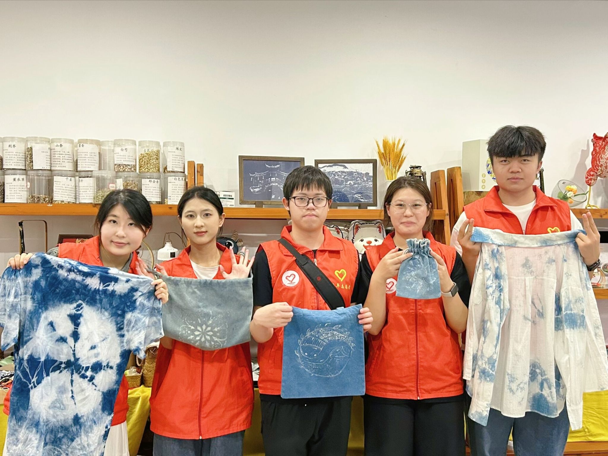 面对传统手工艺面临失传风险的现状,实践团深度参与扎染体验活动,探索非遗活化新路径。在非遗传承人的悉心指导下,挑选心仪的布料,运用折叠、捆扎、缝合等手法,将布料捆扎成不同造型。浸染环节,成员们小心翼翼地将布料浸入染料池中,随着时间推移,原本单调的白布逐渐晕染出靛蓝色彩。拆开捆扎的线绳,深浅不一的靛蓝色块在素白底色上晕染出自然灵动的图案。成员们捧着扎染的衣服和方巾,真切体会到传统工艺的神奇,一针一线、一染一浸间,完成与古老技艺的深度对话。