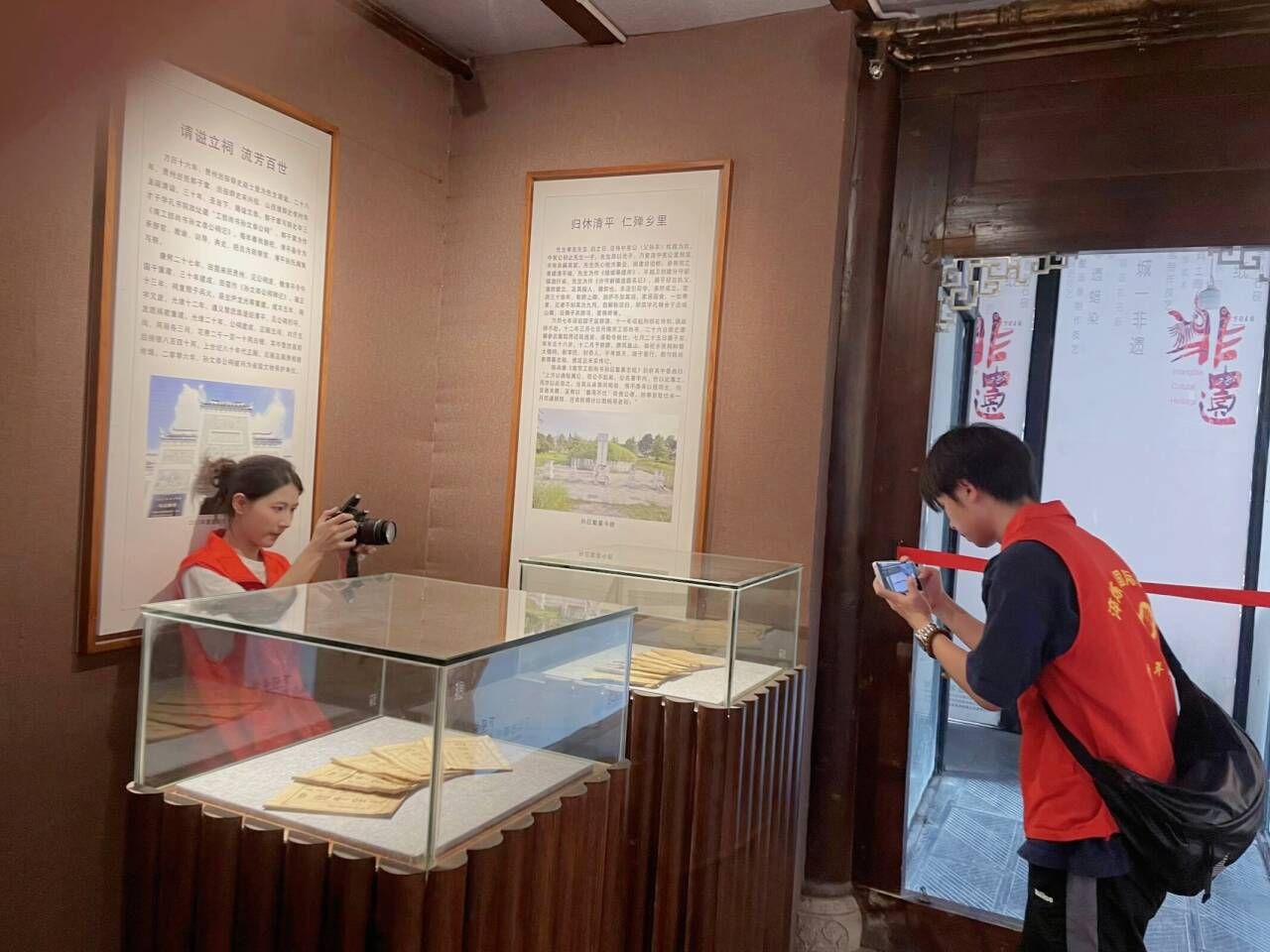 初入下司古镇,实践团成员们化身“古镇记录者”,用镜头捕捉山水灵韵与建筑风华。穿梭于青石板路,聚焦明清古建的飞檐翘角,定格清水江畔的烟波浩渺;深入民俗展馆,拍摄珍贵文史资料,挖掘“诸碑立祠”等历史故事背后的人文脉络。每一次快门按下,都是对古镇岁月的留存——通过影像梳理建筑肌理、留存民俗记忆,为古镇文化资源建档,在探寻中读懂历史传承的厚重,收获用光影讲好古建故事的能力。