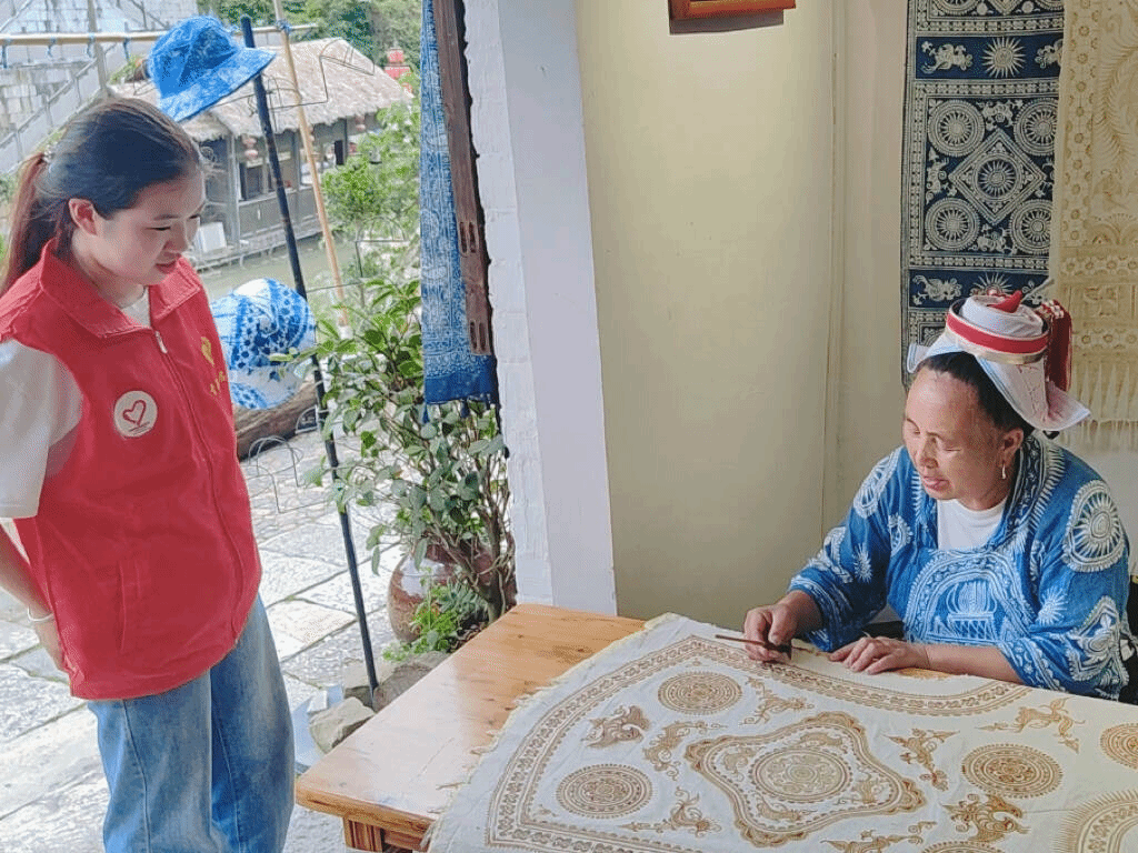 蜡染是中国古老印染技艺,也是西南少数民族文化传承的重要载体。踏入古镇巷陌,一间非遗蜡染坊映入眼帘。苗族蜡染传承人端坐桌前,手持蜡刀在布上精心勾勒传统纹样。实践团成员们专注观摩学习,认真聆听传承人讲述蜡染在苗族婚嫁、庆典中的文化意义。在感叹传统技艺精妙的同时,大家也深刻意识到非遗传承面临的困境与挑战,实践团成员们将用影像传播蜡染技艺,设计文创产品推动创新,开展体验活动扩大传承,助力古老技艺焕发新生。