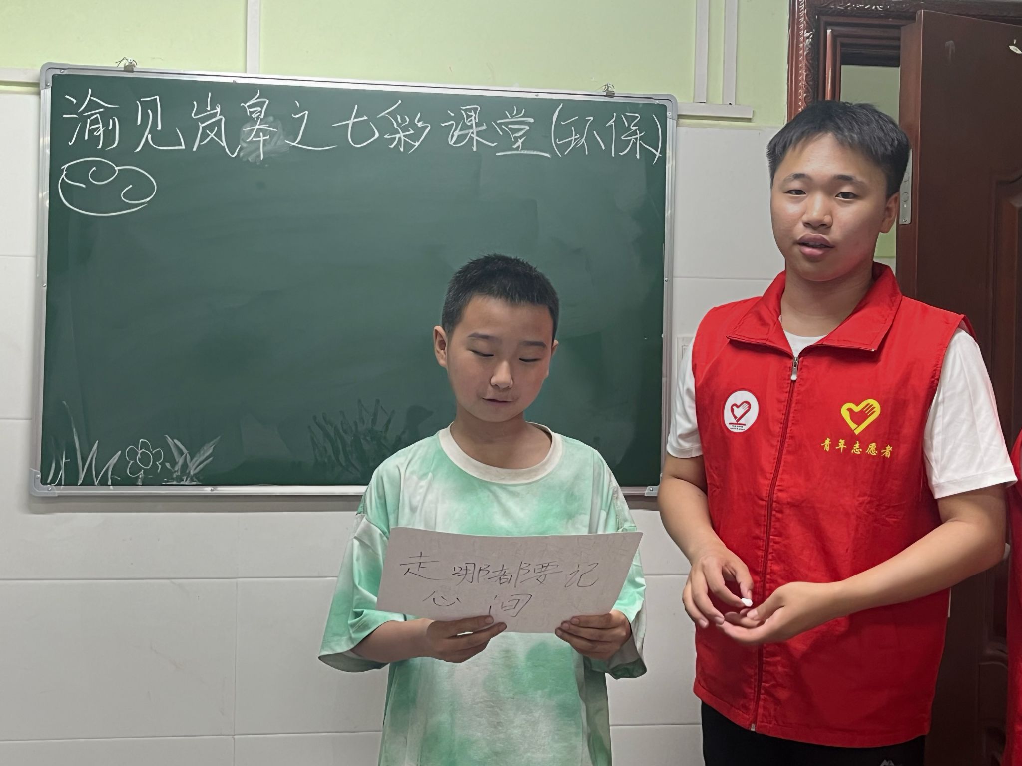 最后,由一名少先队员代表,高举右手带领大家庄严宣誓。“我是环保小卫士,节约水电爱纸张,垃圾分类好习惯,爱护花草和动物,走到哪儿都要记心上。”坚定的童声整齐划一,响彻整个教室。孩子们眼神清澈而认真,这份承诺不仅是对生态理念的传承,更凝聚着青少年儿童守护地球家园的决心与担当。