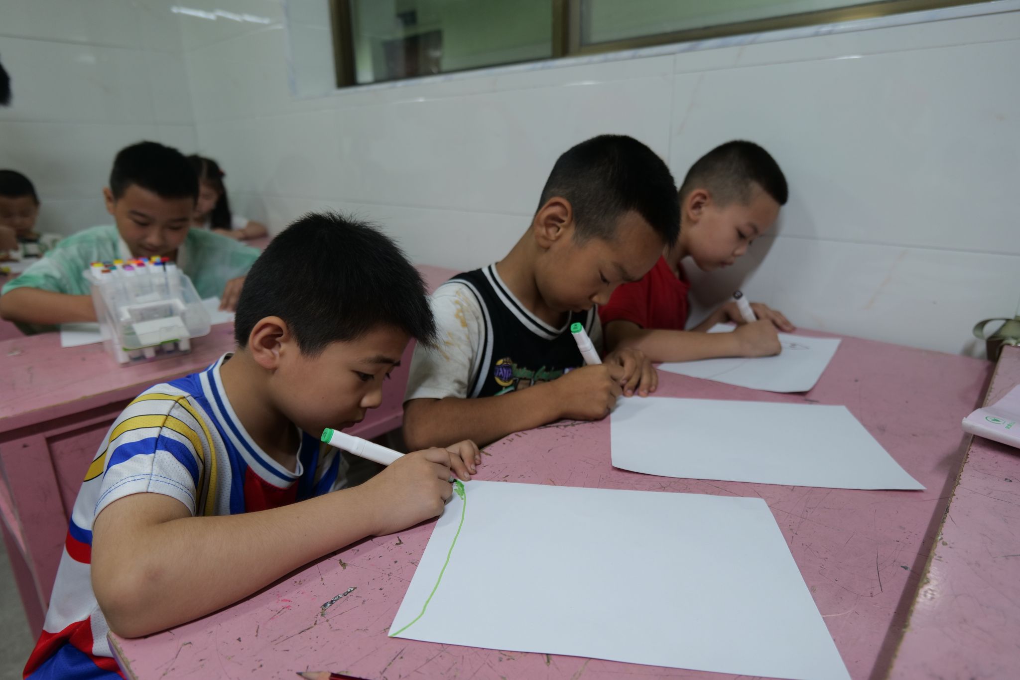 第三堂课的绘画创作环节中,小朋友们充分发挥想象力,用五彩斑斓的画笔,在画纸上勾勒出自己内心的绿色家园。这些充满童真视角的艺术作品,不仅承载着少年儿童对美好生态环境的向往,更折射出他们对生态保护理念的深度思考。在作品展示与分享环节,小朋友们积极主动展示创作成果,通过语言叙述深化对生态理念的理解。