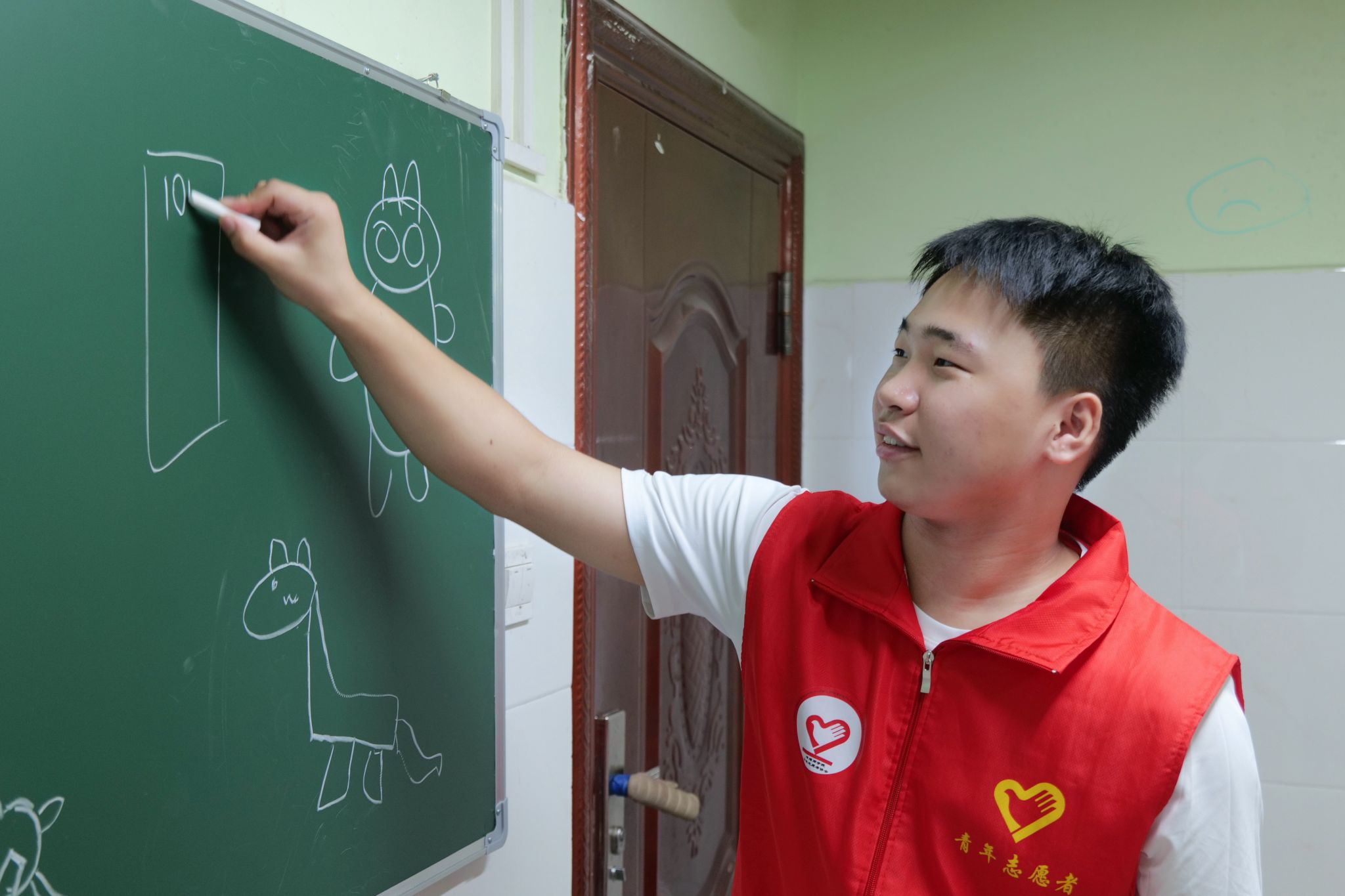 第一堂课,宣讲团成员以一场趣味横生的“你画我猜”游戏作为开场,瞬间拉近了与小朋友们的距离。被选中上台的“小画家”们,根据宣讲团成员给出的词语,在黑板上认真勾勒与创作,台下的小朋友们则积极抢答。该环节不仅达成了破冰目标,更在游戏过程中完成对生态知识的初步建构,为后续教学开展奠定良好基础。