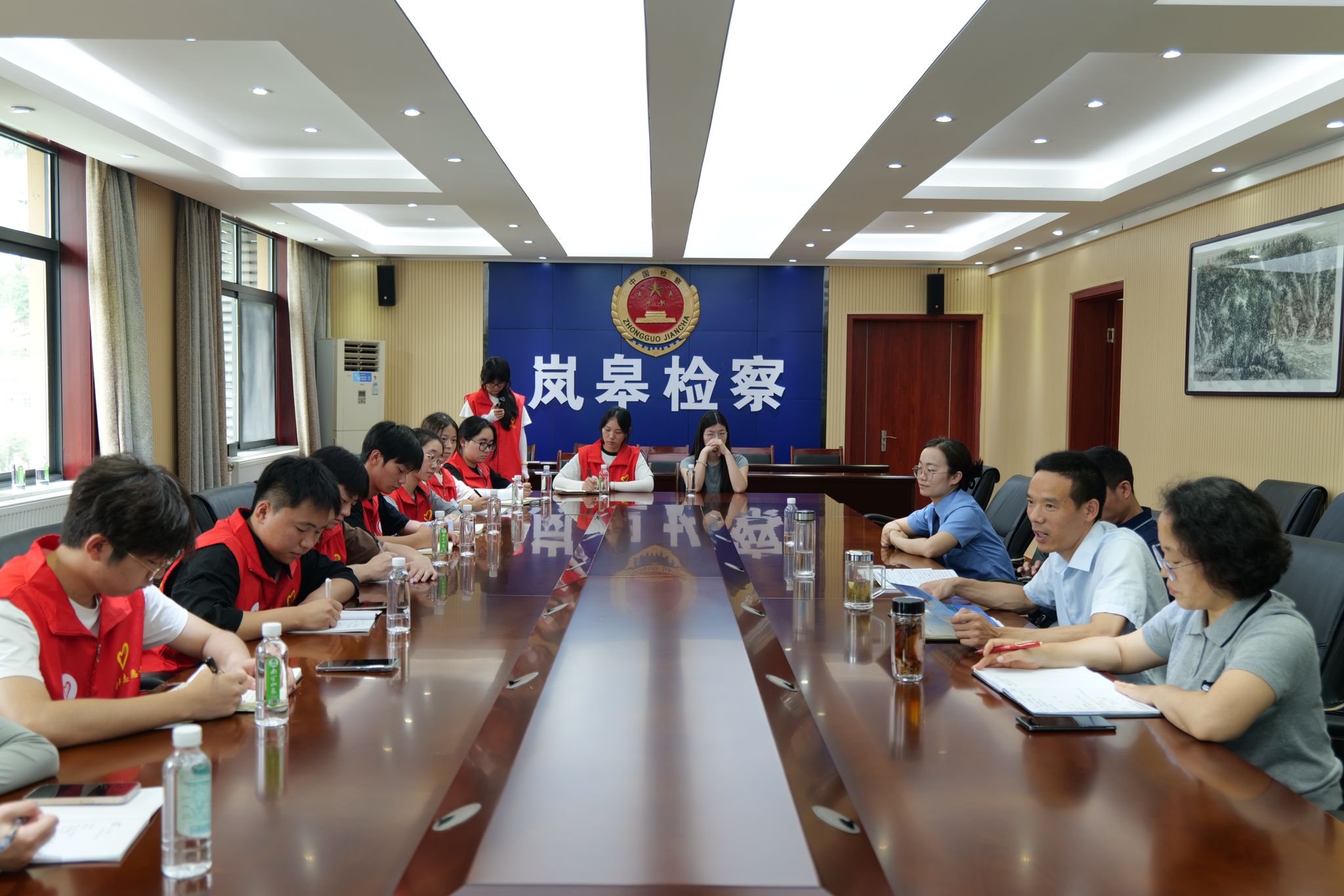 在此基础上,宣讲团深入了解了检察院独具特色的“五金”工作理念:“肩挑法治金扁担;手启公益金钥匙;足立民生金口碑;心系清廉金品质;身沐党性金光辉”。此外,成员们了解到检察院顺应数字化潮流,创设政法全媒体中心、数字检察指挥中心,依托最高检数字模型实现案件信息精准分析,并开发“掌上岚检”小程序提升办案效率,落实“数据多跑路,群众少跑腿”;同时,通过健身房、“三原书屋”等功能室传递人文关怀,帮助干警缓解压力、保持状态。对宣讲团而言,此次参访不仅深化了其对基层司法实践与法治精神融合的理解,更提供了将理论转化为行动的鲜活案例。无论是“五金”理念中公益诉讼与民生保障的双向联动,还是数字化赋能与人文关怀的双重创新,都为宣讲团在传播法治理念、创新宣讲形式、强化责任担当方面提供了可借鉴的路径,助力其更生动、具体地讲好中国法治故事。