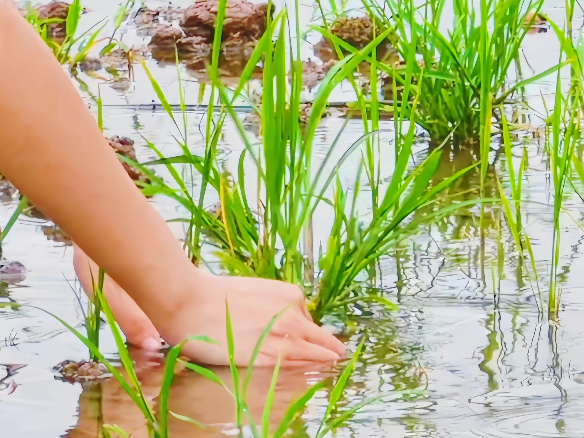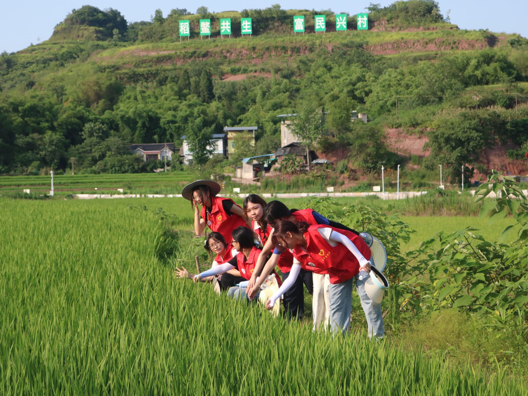 盛夏的阳光洒满重庆市合川区三庙镇的田野,稻浪翻滚间,身着红马甲的青年志愿者挽起裤脚、踏入水田,用双手触摸泥土的温度,用镜头捕捉稻禾的生长轨迹。