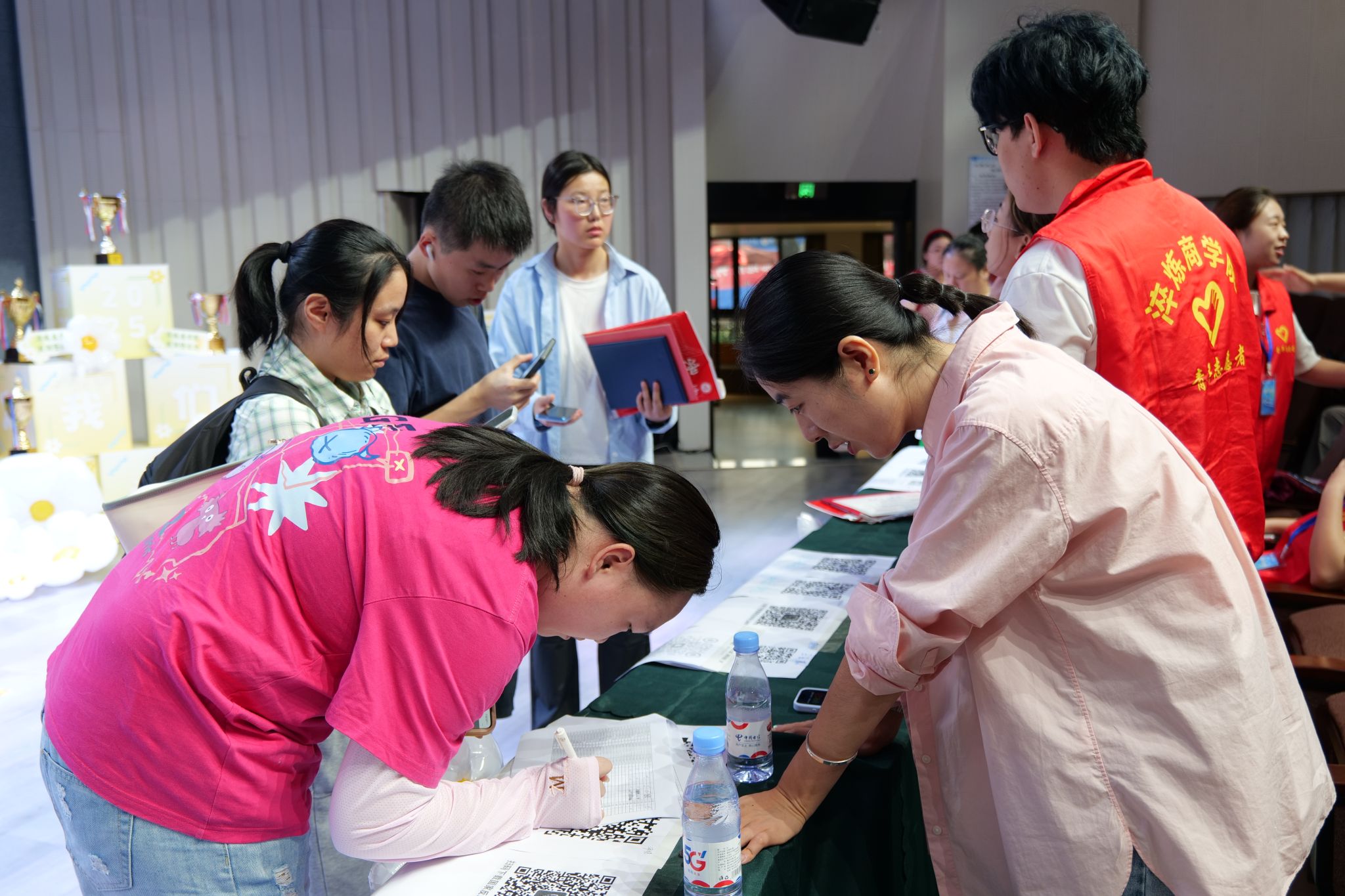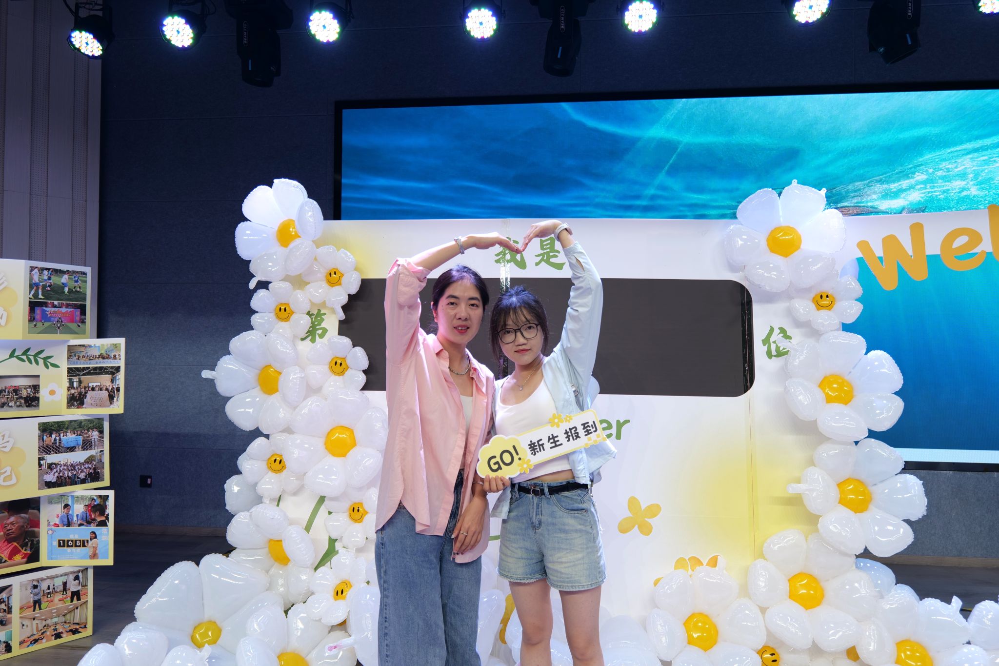 独具特色的签名展板,形式多样的打卡活动,还有“争奇斗艳”的雏菊气球,在一旁争先亮相,萌新们纷纷驻足留存下作为新生淬炼er的第一张相片。迎新现场还陈列着学院学科竞赛、多彩活动、志愿时刻等主题成果展板,生动勾勒出商院风采,让新生直观感受到商院的独特魅力。签名墙上落下的每一笔,打卡点定格的每一张笑脸,都藏着对未来的无限遐想。