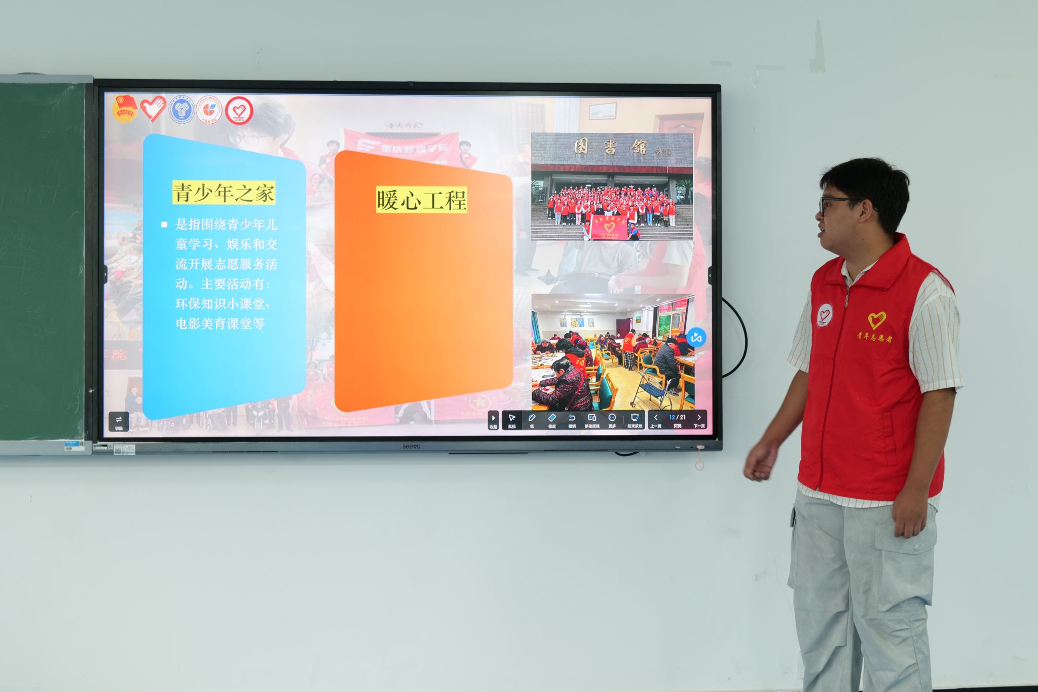 随后,主讲人结合学校实际,介绍了四类特色服务项目。为青少年儿童打造的温暖港湾——“青少年之家”,聚焦、关怀特殊群体的“暖心工程”,服务校园师生的“移通学子在行动”以及带领学子们走出校园,深入基层的暑期“三下乡”社会实践活动。每一个项目,都是志愿精神的生动诠释,都是爱与责任的传递。