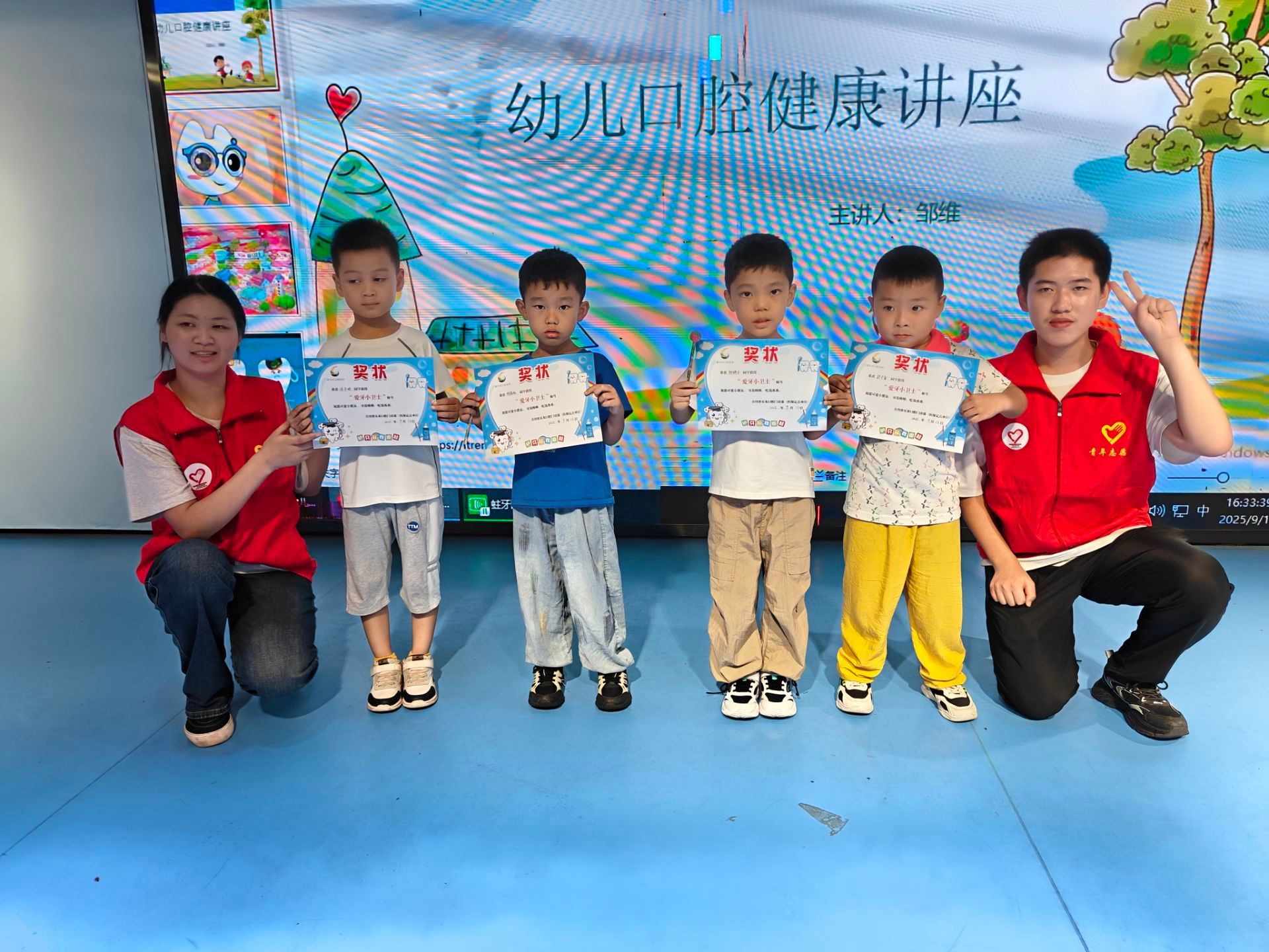 活动接近尾声,志愿者们手捧定制的“牙齿健康宝宝”奖状与护齿小奖品,为口腔健康的小朋友颁发。拿到奖状和礼品的孩子,兴奋地把奖状举得高高的给小伙伴们展示,小脸上满是自豪与欢喜。从生动的口腔知识讲座到互动式的刷牙教学,再到细致入微的口腔检查,每一个环节都让孩子们在欢笑中汲取了口腔健康知识。“爱牙护牙”也不再是抽象的口号,而是化作了具象的认知,在孩子们的童年里生根发芽,为他们的健康成长筑牢“齿间防线”。