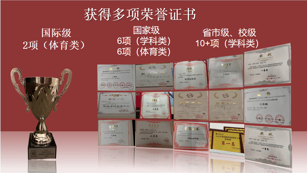 在训练之余,她也没有落下专业学习,将在体育中培养的拼搏精神、团队协作能力运用到学科竞赛中。在学校支持与老师的指导下,积极参与各级学科竞赛,她充分发挥领导能力,沟通能力、抗压能力,最终荣获6项国家级奖项,10余项省市级校级奖项等佳绩,并取得专业资格证。