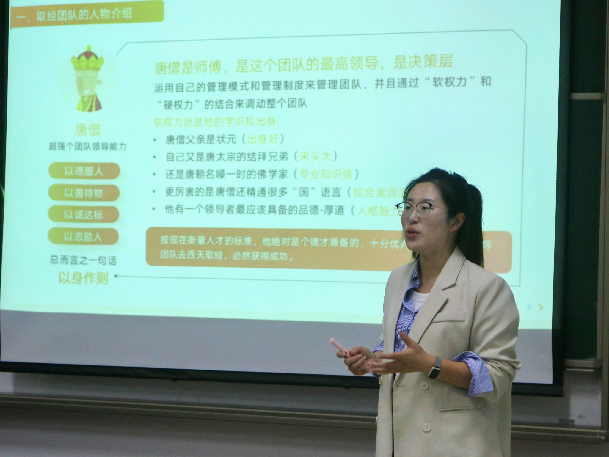 郭老师在“轻量团队成长路径”分享中围绕竞赛团队搭建与管理展开解析。提出需配齐技术研发、产品设计、市场分析、文案策划、项目管理五类核心岗位,并创新性地以《西游记》人物为喻,清晰呈现“德者领航、智者献策、能者攻坚、劳者践行”的角色互补逻辑,明确管理者要坚守团队利益优先原则,强调团队建设需紧扣结构、规则、目标等六大要素。帮助学生掌握竞赛团队搭建与管理的方法,以实现团队更好的运营。