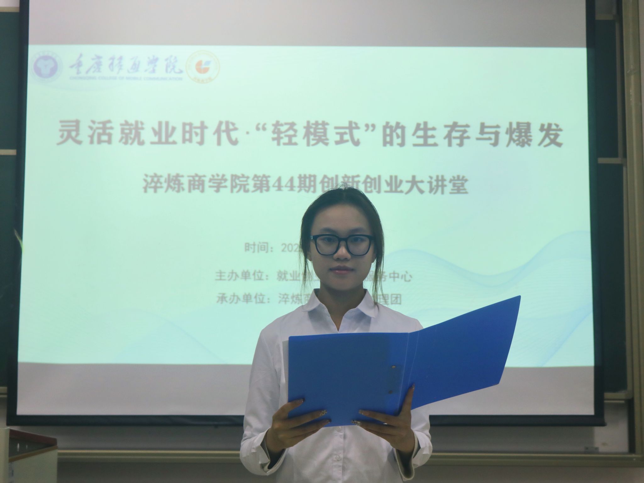 为帮助同学们在创业浪潮中精准解析赛题逻辑、掌握“轻模式”团队的组建与运营密码。由就业创业指导与服务中心主办、淬炼商学院承办的“第44期创新创业大讲堂——灵活就业时代·‘轻模式’的生存与爆发”于2025年10月22日晚上19:00在天空108教室成功举办。此次活动有幸邀请到重庆移通学院高级就业创业导师郭淼担任主讲,助力同学们吃透赛事规则、打造高适配“轻模式”团队在创业实践与赛事竞争中抢占先机。