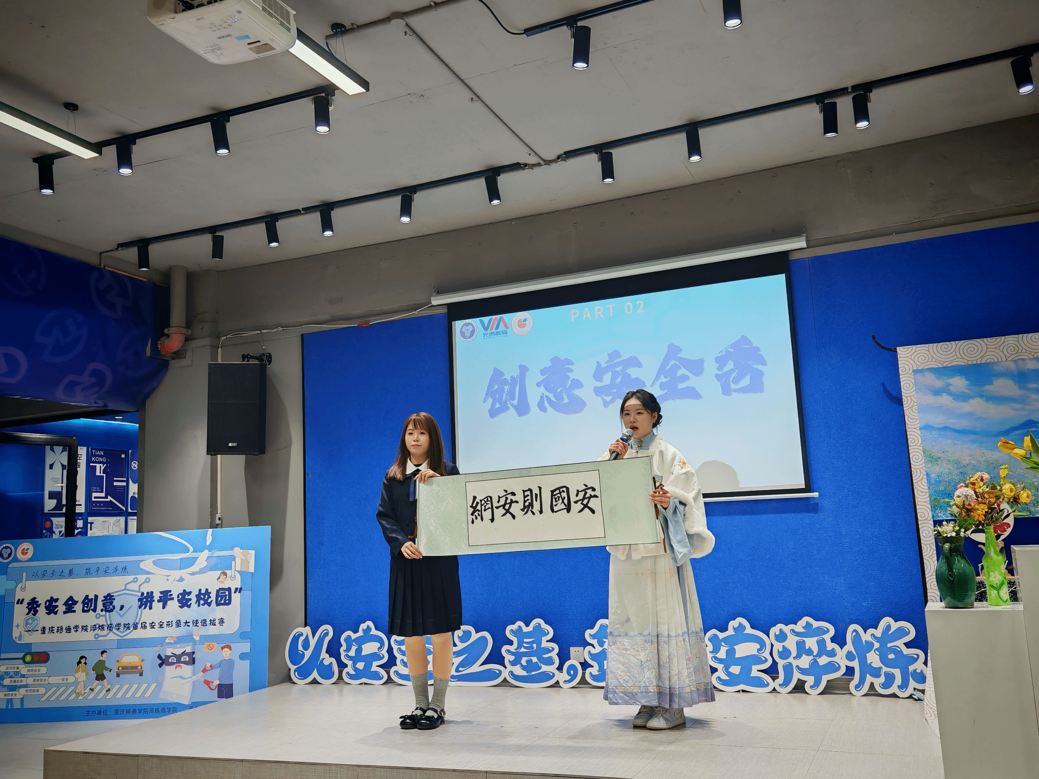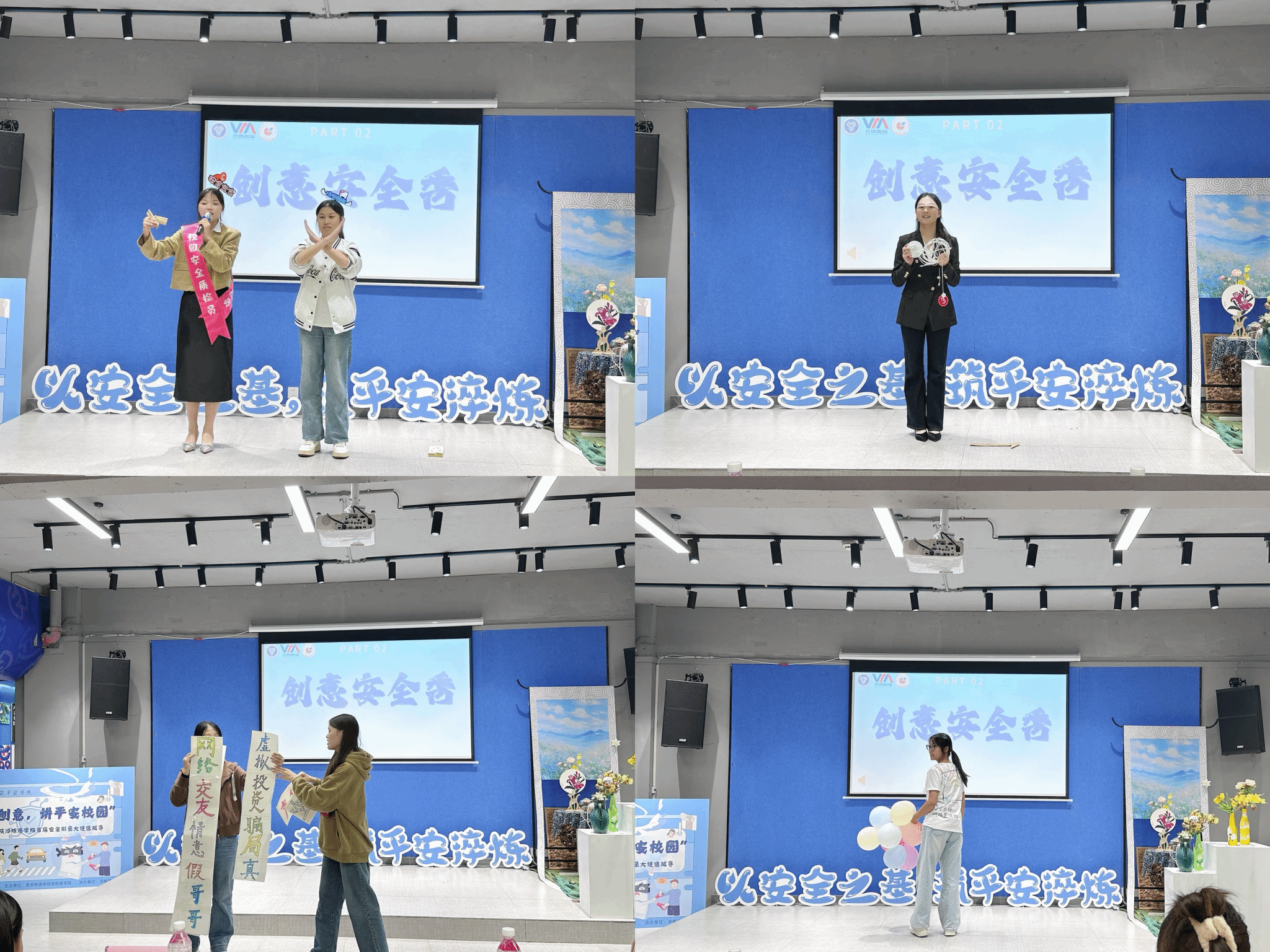 “创意安全秀”环节中,选手们围绕交通安全、反诈防骗、消防安全等主题,解锁快板、唱歌、小品、歌剧、毛笔书写、T台走秀等多元表演形式,让安全知识在创意表达中焕发光彩。1号选手书写“网安则国安”毛笔字,在字里行间里透露出了网络安全的重要性;2号选手打起反诈快板,“诈骗手段花样多,捂紧钱包别啰嗦”的唱词朗朗上口;3号选手将插排带上讲台,为大家讲述寝室安全的重要性;9号选手携带红绿灯标识与安全小常识,交通安全可是少不了;10号选手与11号选手都选择与小品的方式来呈现,分别从网络恋爱骗局与线下高利贷骗局来警示观众;更有选手通过反诈小品、安全主题歌曲、创意T台秀等形式,从不同维度诠释安全内涵。