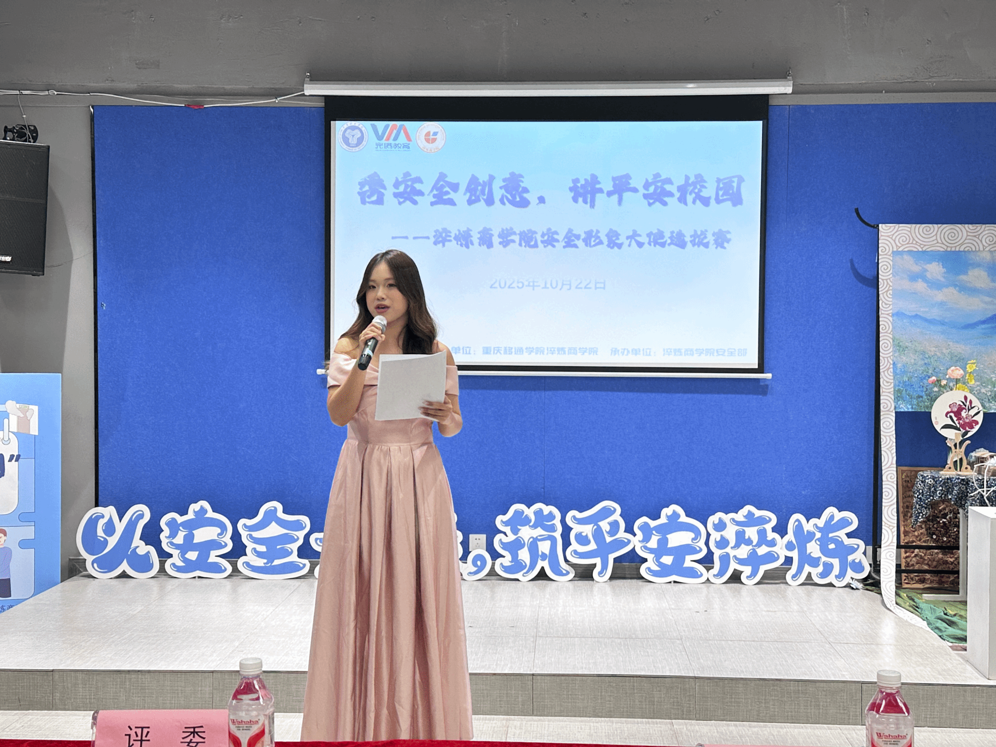 为深化校园安全文化建设,创新安全教育载体,助力青年学生安全责任意识与表达能力的双重提升,重庆移通学院淬炼商学院安全部于2025年10月22日在天空书院长空报告厅举办“秀安全创意,讲平安校园”首届安全形象大使选拔赛。作为淬炼商学院安全文化品牌打造的开篇之作,本次赛事以“创意走秀+主题演讲”为核心形式,为学子搭建起展现青春风采、传递安全理念的舞台,更以榜样力量引领全院师生共绘平安校园新图景,为青年成长注入安全底色。