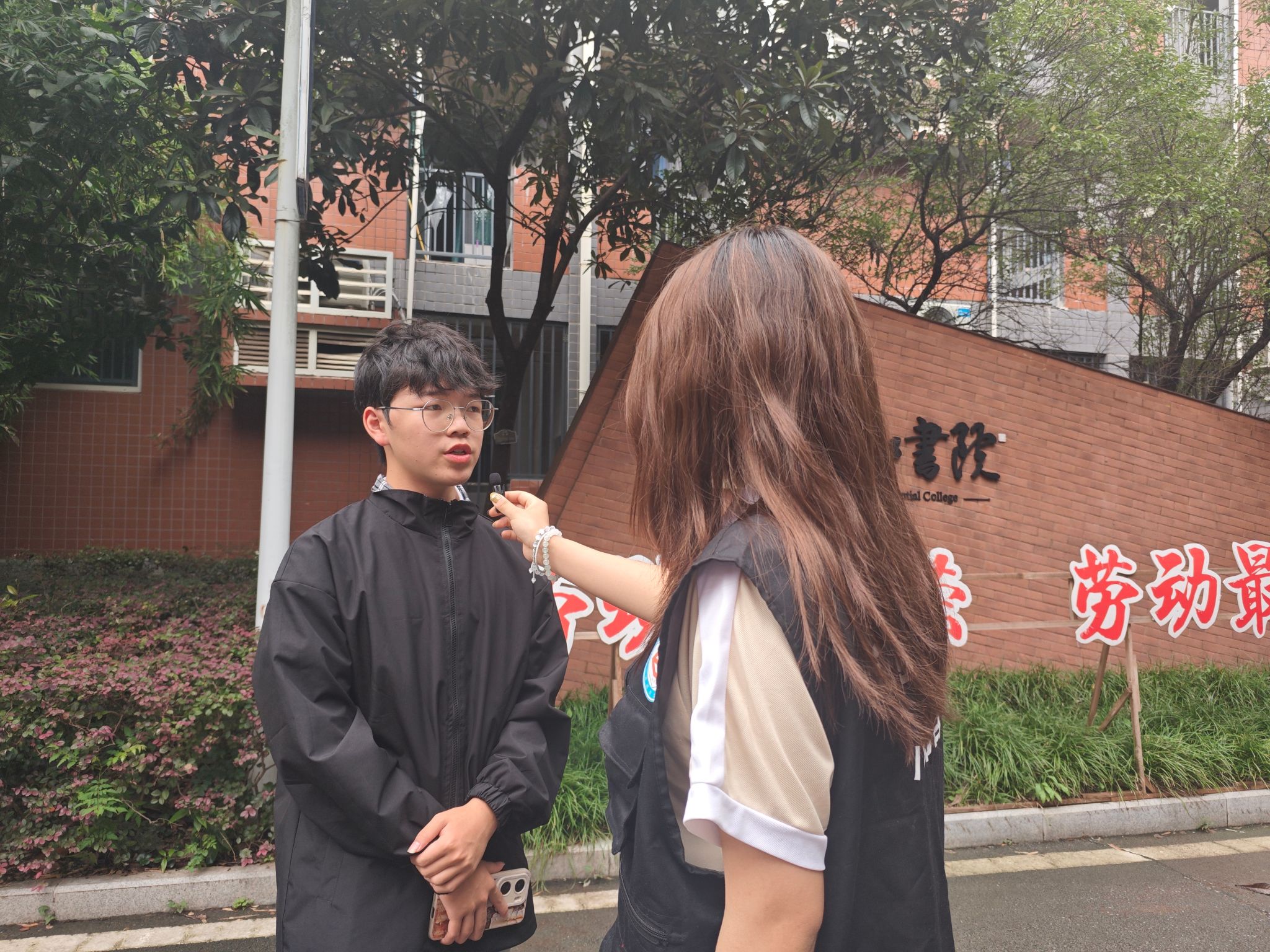 小记者注意到一位正在清理书院周边环境的同学,轻声打断其工作,并礼貌地提出询问。