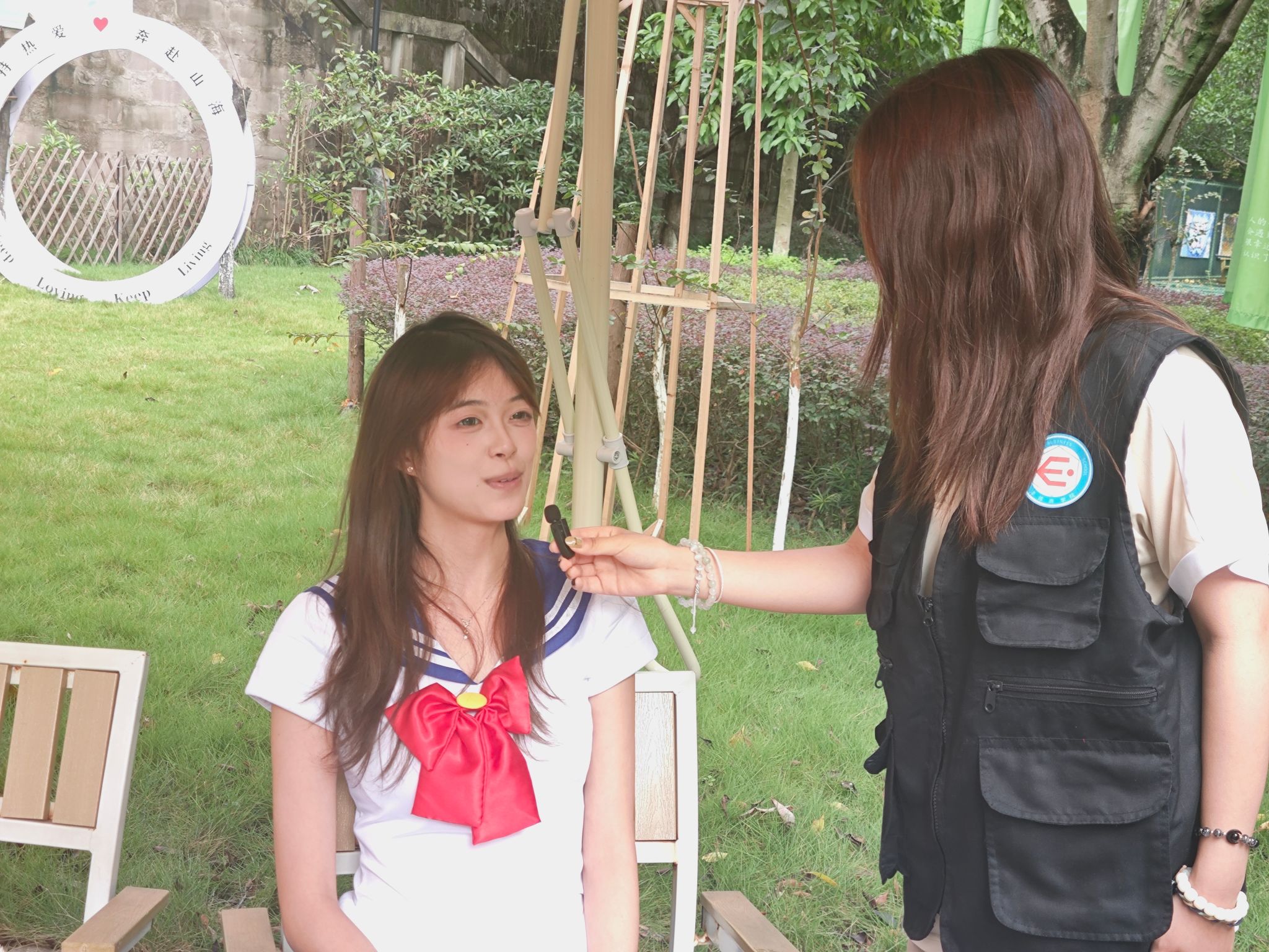 一位装束可爱的同学瞬间引发了小记者的强烈兴趣。