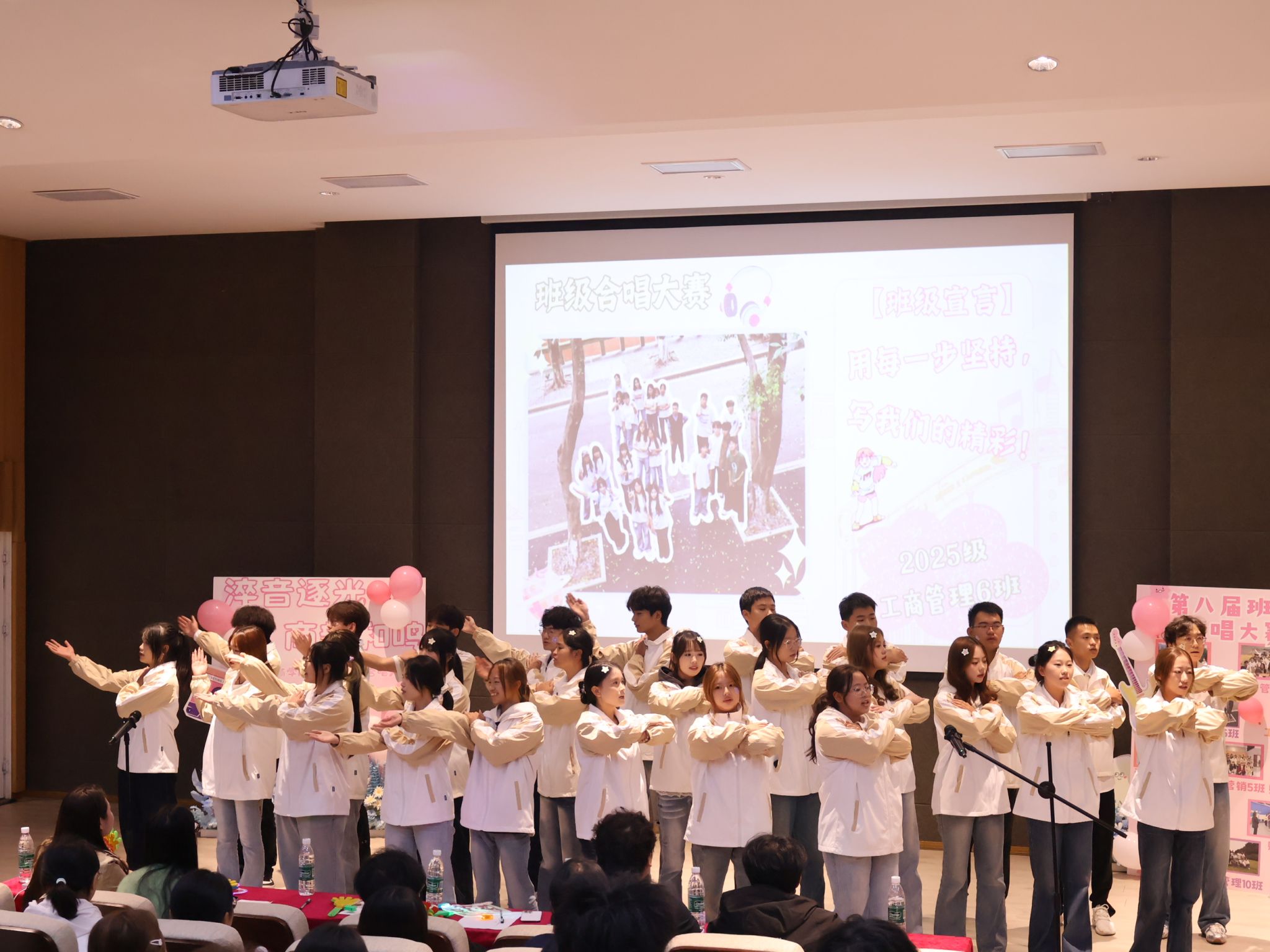 2025级工商管理2班的《我的未来式》活力满溢。他们用明快的节奏与默契的和声,勾勒出青春的无限可能。