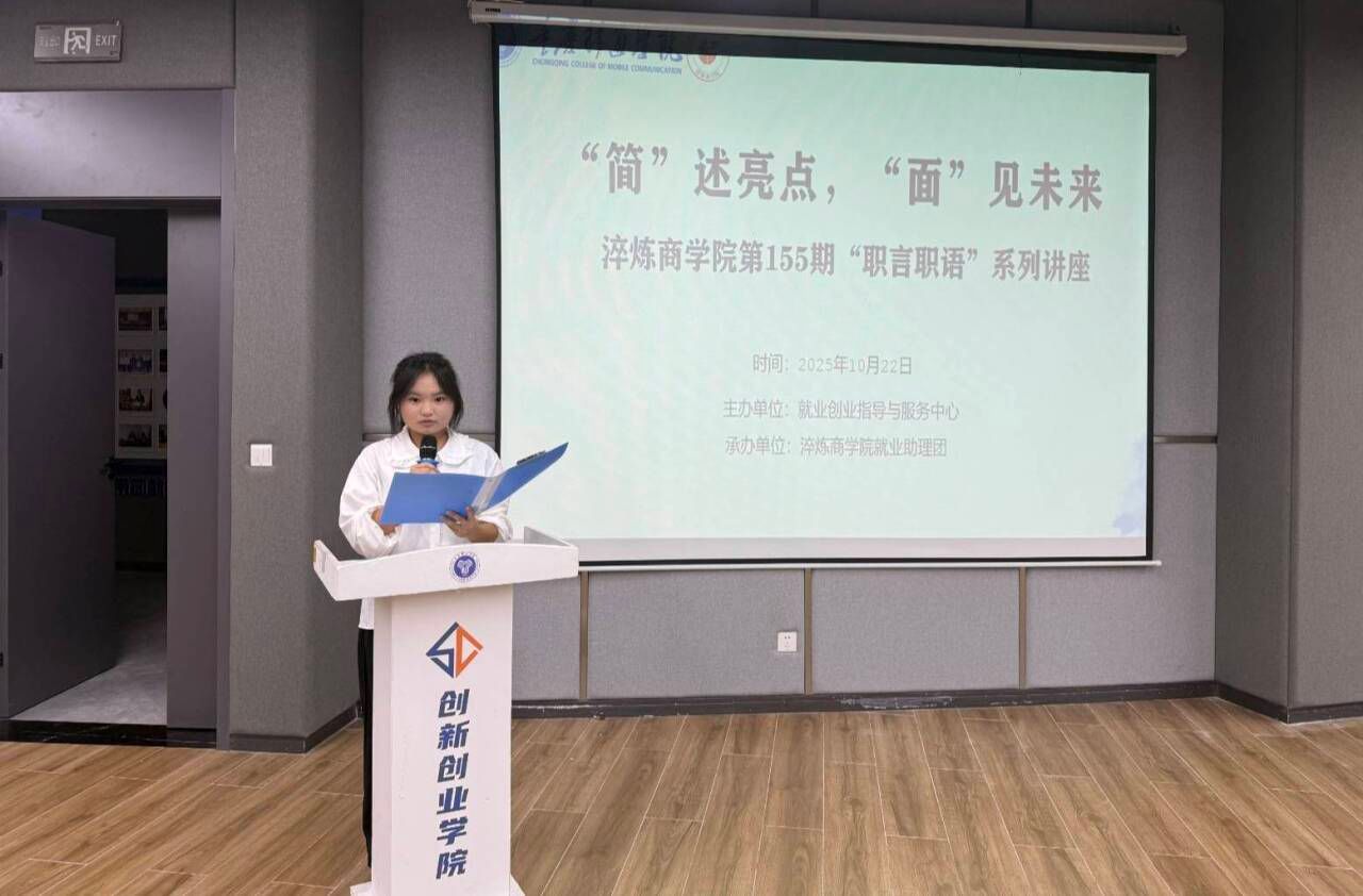 为助力同学们熟练掌握面试核心表达技巧,突破面试沟通瓶颈,提高个人综合能力。由就业创业指导与服务中心主办,淬炼商学院承办的“淬炼商学院第155期‘职言职语’讲座——“简”述亮点,“面”见未来”于2025年10月22日19:00在双创学院路演大厅成功举办。本次活动有幸邀请中国人力资源与社会保障部创业培训项目讲师、全球生涯规划师佘桂隆作为主讲人,为同学们带来一次干货满满的面试经验分享会,为同学们的求职面试之路助力。