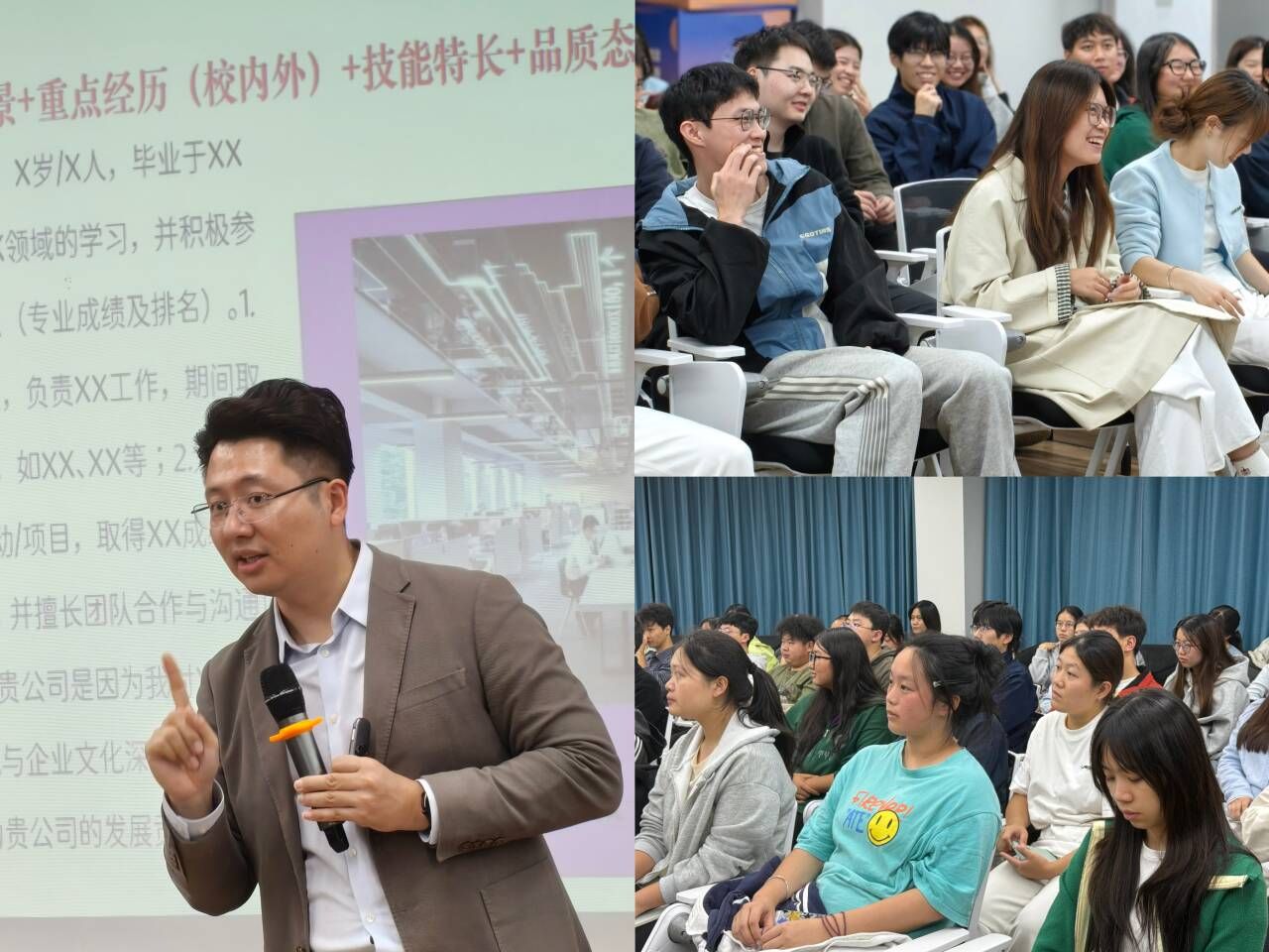 佘桂隆老师聚焦面试关键环节,解析面试礼仪与着装的核心要求,以“面试万能公式”为核心展开讲解,将自我介绍拆解为“基本情况+教育背景+重点经历+技能特长+品质态度+求职动机”六大模块并结合实际案例演示如何将个人经历与岗位需求精准匹配。帮助同学们提升面试表达的逻辑性与感染力,进一步增强求职信心,为从容应对面试积累扎实的实战经验。