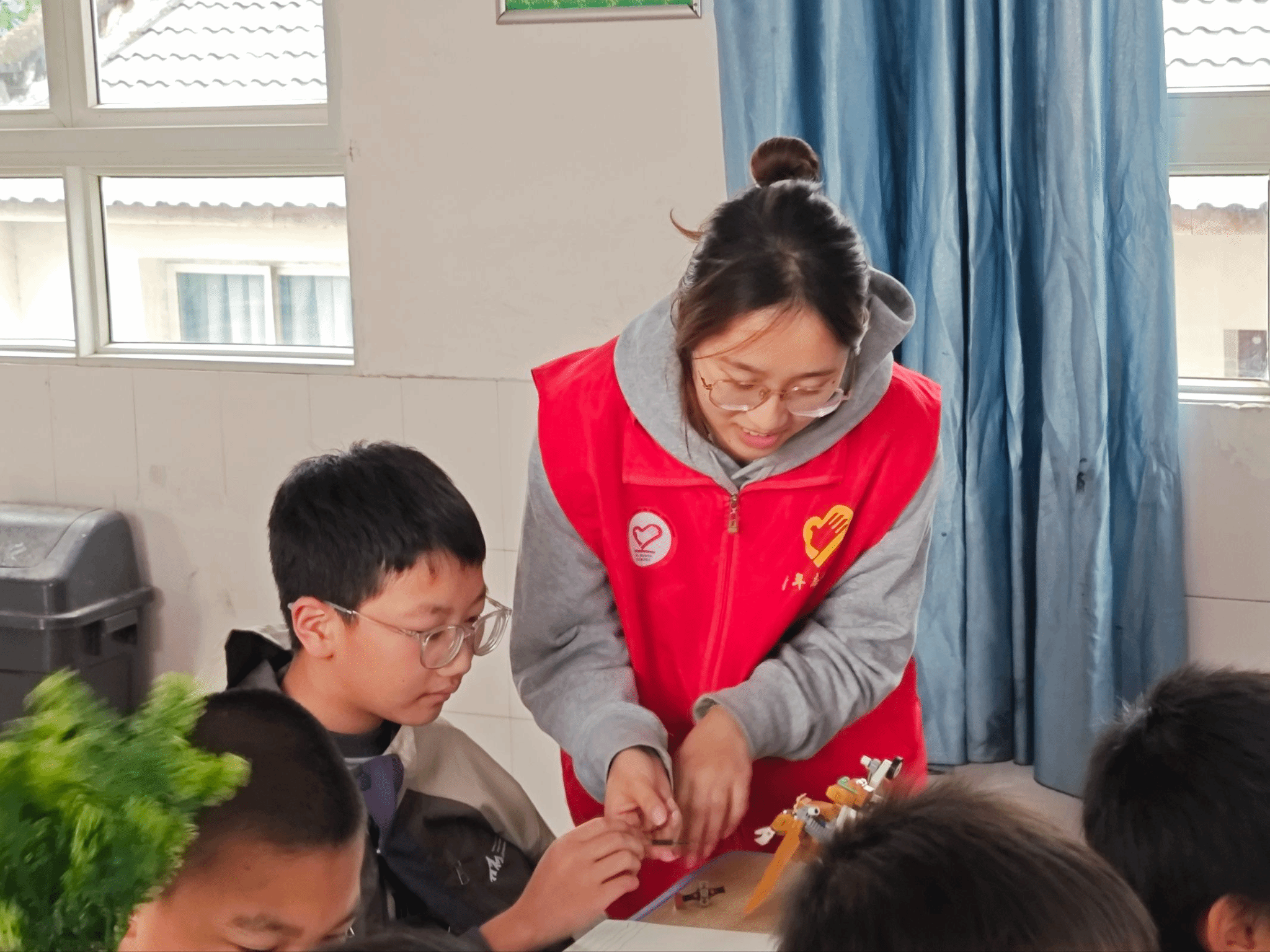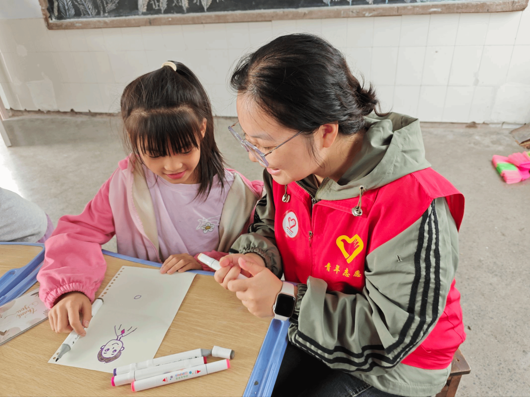 在重阳节贺卡制作环节,志愿者们为孩子们分发了彩色卡纸和彩笔,鼓励大家写下对长辈的心里话,并画出与长辈相处的难忘瞬间。孩子们伏在课桌上,专注地构思、书写、绘画,不时抬头向志愿者求助。志愿者们俯身耐心协助,帮着斟酌措辞和指导绘画技巧,偶尔还会分享自己与长辈的温暖故事。这一张张染着彩的贺卡,裹着细碎的陪伴与惦记,把“敬老”的心意,轻轻浸在了笔尖的每一道痕迹里。