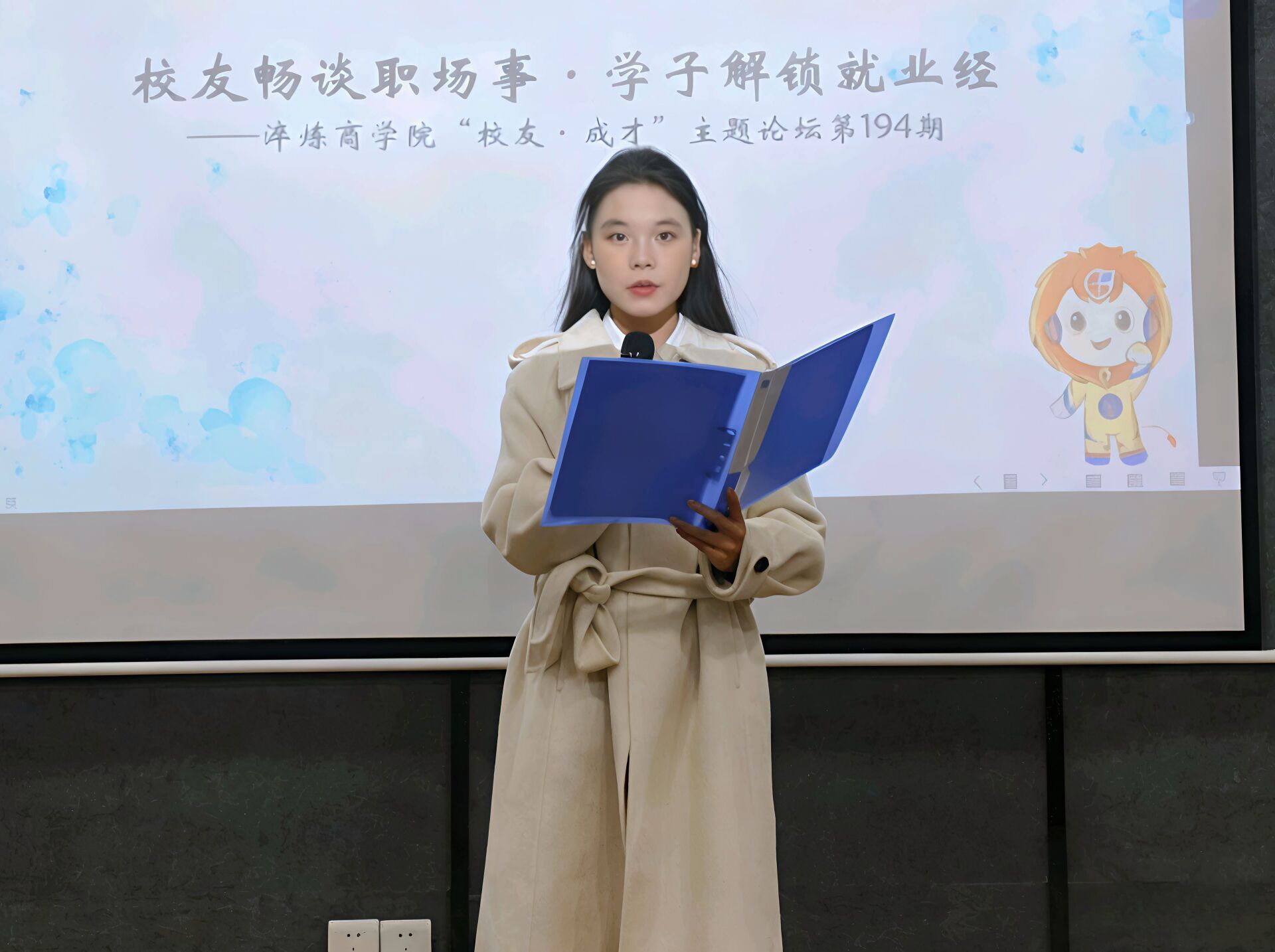 为搭建校友与在校学子的经验传递桥梁,帮助同学们洞悉职场逻辑、积累就业与创业经验。由淬炼商学院主办的“校友畅谈职场事·学子解锁就业经——淬炼商学院‘校友·成才’主题论坛第194期活动”于2025年10月26日在汇江书院影音活动室顺利开展。本次活动有幸邀请2012级市场营销专业的杰出校友杨阳学长作为主讲嘉宾,与同学们共同探讨求职历程,助力同学们解锁就业与发展的关键密码。