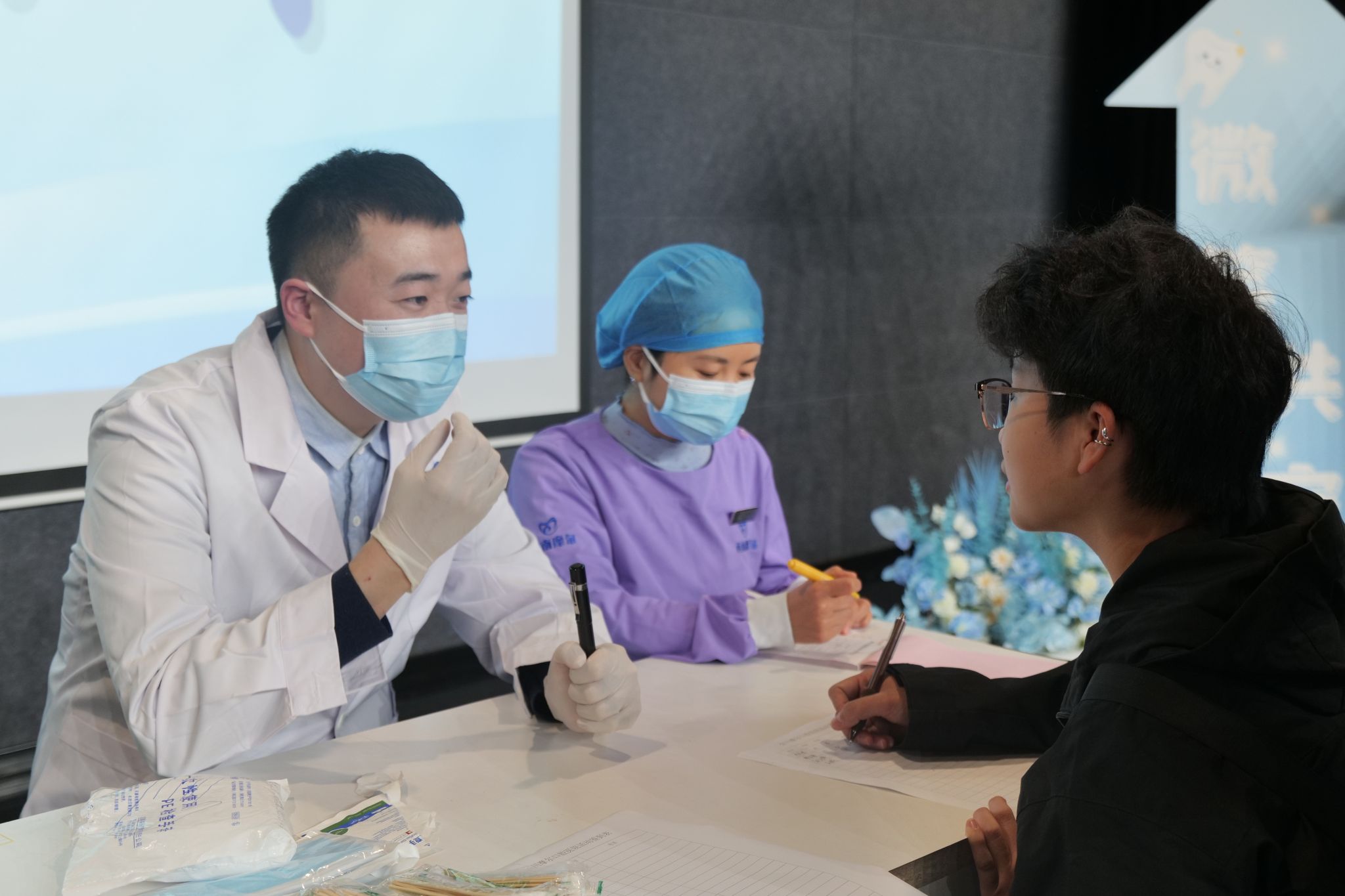 宣讲结束后,现场同步开启义诊环节:医生团队为每位同学细致检查口腔状况,从牙齿磨损程度到牙龈健康状态逐一评估,结合个体情况给出专属护齿建议,让同学们拿到了适配自身的“口腔健康指南”。这场“理论+实践”的护齿行动,把宣讲台上的专业知识落到了实际护理中——不仅帮大家清晰了解自身口腔现状,更让科学护齿的意识从认知层面延伸到日常习惯里,让每一份关怀都精准落在“齿”间。