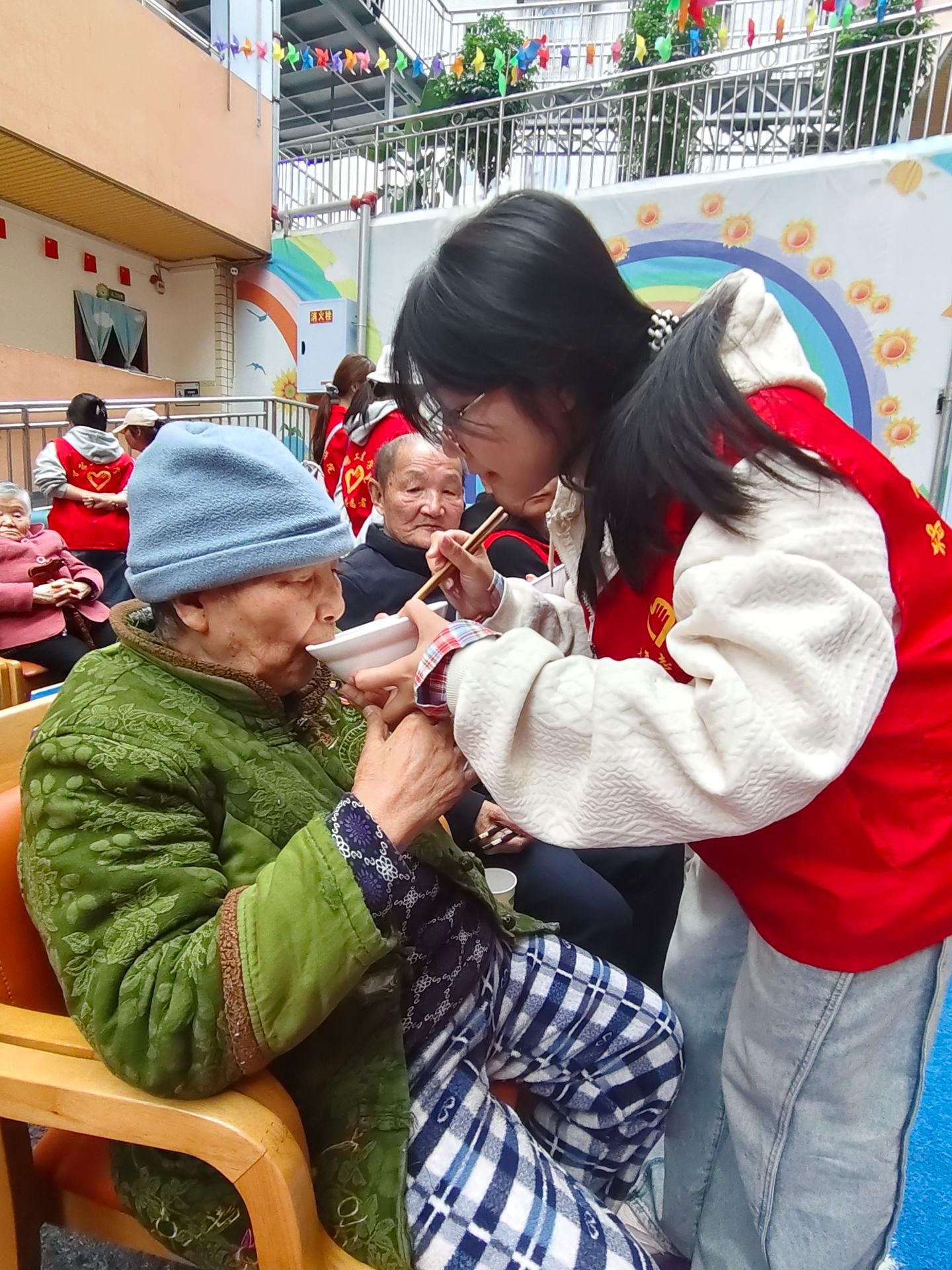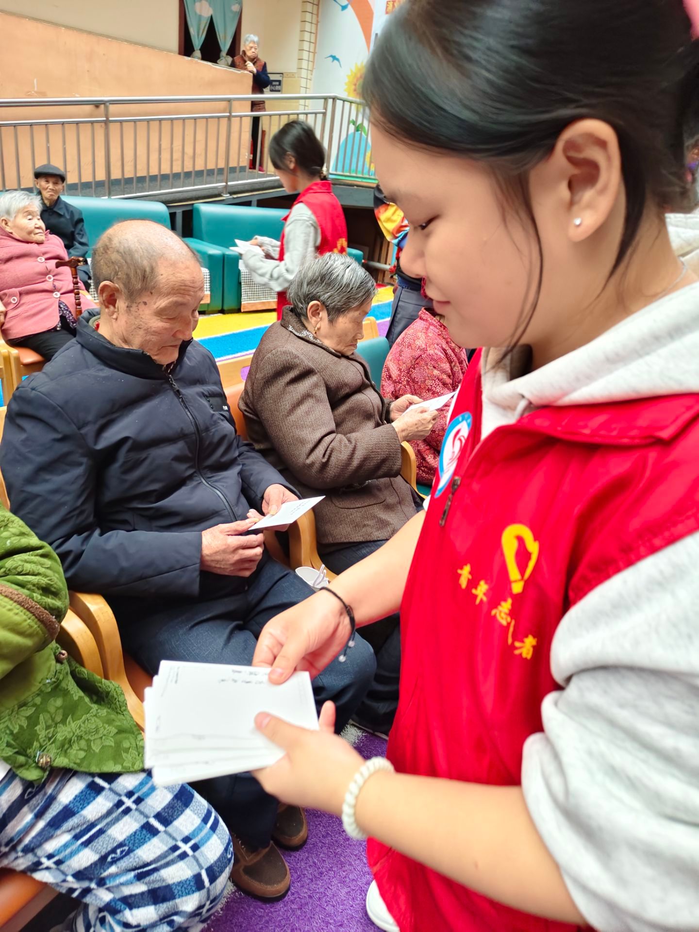 午后,志愿者们小心翼翼端出亲手烹制的桂花醪糟汤圆,颗颗圆润饱满,在瓷碗中泛着诱人光泽。当一碗碗甜糯的汤圆被送到老人手中,软糯的口感温暖了胃,更让长者们的心头漾起阵阵暖意。与此同时,一张张写满真挚祝福的明信片也被逐一送到每位老人手中——“愿您岁岁平安,福寿绵长”“愿您笑口常开,喜乐无忧”……一句句朴实却饱含深情的话语,让长者们忍不住直呼“孩子们是真的把我们放在了心上”。老人们捧着汤圆,看着卡片上的祝福,脸上的皱纹都舒展成了幸福的模样,活动室里满是温馨的气息。