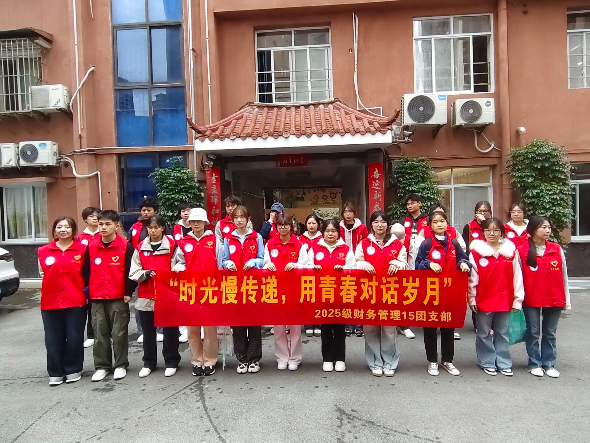 为了让青年学子近距离触摸岁月的纹理,带着蓬勃朝气为老年群体送去关怀与陪伴,2025级财务管理15班团支部于2025年10月28日携手“爱心之旅”敬老院志愿服务专队,走进康乐老年公寓,开展以“时光慢传递,用青春对话岁月”为主题的敬老慰问活动。期盼能用青春的笑语与真挚的陪伴,为长者的生活点亮金色光华,也让青年在与岁月的互动中感悟生命传承的温度。