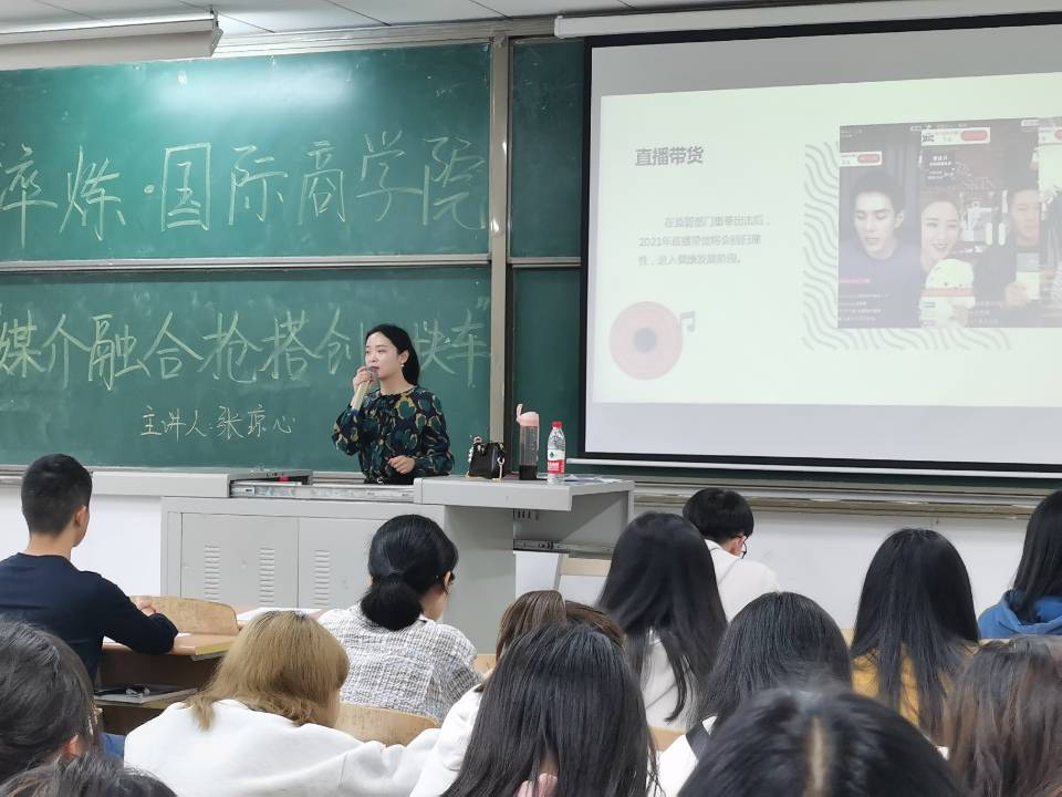 为提升淬炼·国际商学院学子们在新时代创业能力,充分认识媒介融合创业,淬炼商学院就业助理团学创部于2021年4月14日16:00在5203举办了“媒介融合抢搭创业快车”——淬炼·国际商学院第49期创业沙龙,本次活动有幸邀请到张琼心老师为同学们指点迷津。