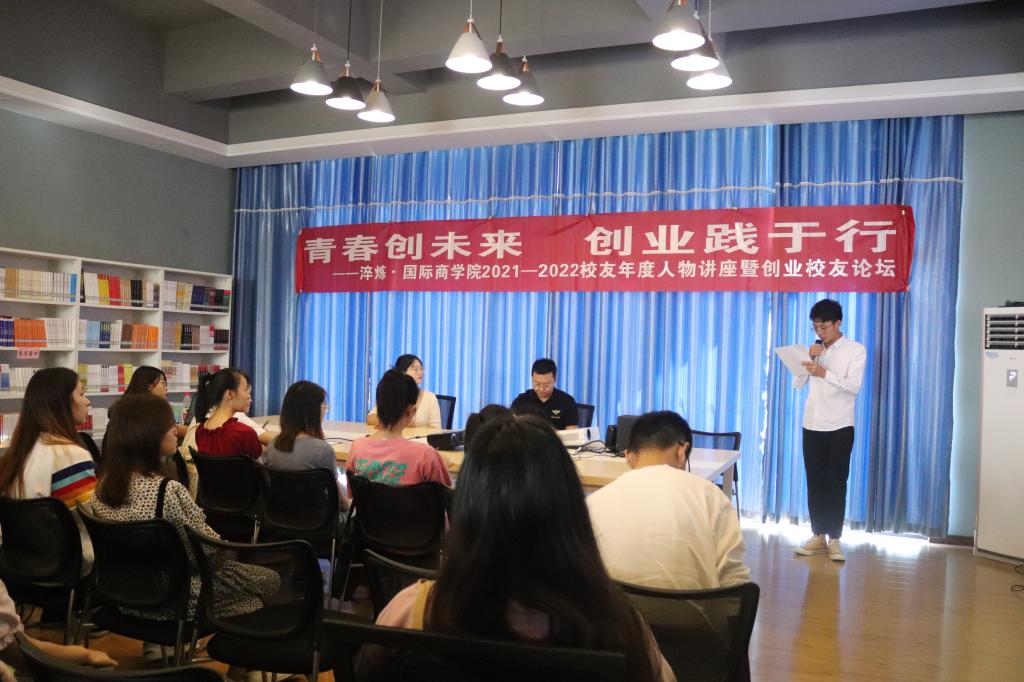 青春须早为,岂能长少年。奋斗是青春的底色。为帮助商院学子探索创业就业之道,加强学院与校友间的联系,凝聚校友力量,2021年9月28日下午16:00在五教五楼图书馆开展了由淬炼·国际商学院团总支主办,就业助理团商科公关部承办的淬炼·国际商学院2021—2022学年校友年度人物讲座暨创业校友论坛。