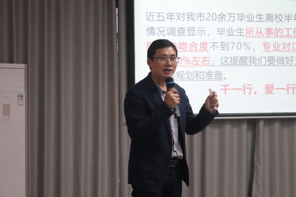 本次大会上张平院长从大学毕业生面对的经济环境、择业现状、毕业生应如何择业三个方面给同学们详细的讲述了择业之道。