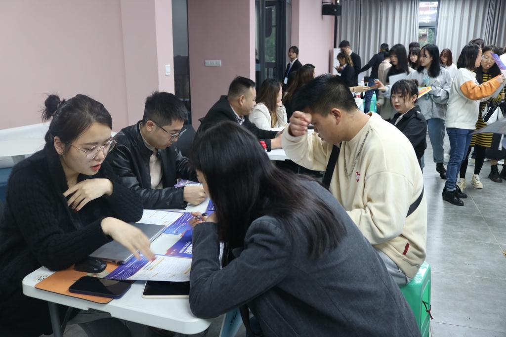 秋雨虽绵绵,不灭求职心。在严峻的就业形势下,就业工作始终是学院的重心,为营造良好的就业氛围,拓宽学子就业渠道。淬炼·国际商学院于2021年10月19日在别都书院四维空间举办了“扶摇而上九万里·天高海阔任鸟飞”——淬炼·国际商学院2022届秋季管理类专场双选会。本次双选会邀请到龙湖集团、泸州老窖等19家知名企业在我校开展招聘活动。毕业班的同学们也热情的投入到此次双选会中,相信每位同学都是受益匪浅。