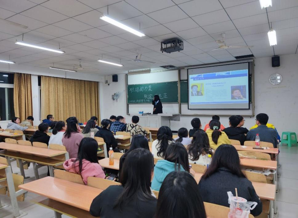 活动伊始,由10班班长黄秘秘为大家简单介绍了现目前社会转型期的各种激烈竞争与机遇挑战。她强调指出,对于即将从“校园人”转变为“社会人”的应届毕业生,应加强放眼全局的能力,做出良好的职业规划,端正求职态度,树立起明确的人生目标。毕业是校园学习时光的结束,也正是职业发展阶段的起点,在这一节点上,需为自己拟定职业目标,如毕业2年内全面熟悉行业发展方向与平台、5年内成为业内专业人士、10年内成为业内专家或管理阶层、往后甚至做到更高的成就。毕业之际做出清晰的职业生涯规划,正是系好了职业生涯的第一颗扣子,对走好今后的人生之路具有重大的意义。